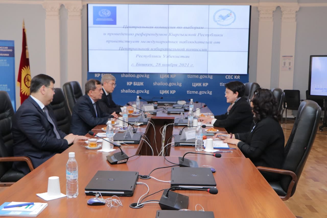 Председатель Центральной избирательной комиссии по проведению выборов и референдумов Кыргызской Республики Нуржан Шайлдабекова встретилась с представителями Центральной избирательной комиссии Республики Узбекистан во главе с председателем ведомства Зайниддином Низамходжаевым.
