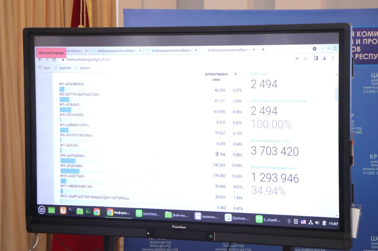ЦИК КР также информировала, что итоговые сведения в разрезе каждого участка по итогам выборов, а также информация по количеству избирателей с 2016 года публикуются в разделе «Открытые данные» на официальном сайте ЦИК с возможностью скачивания.