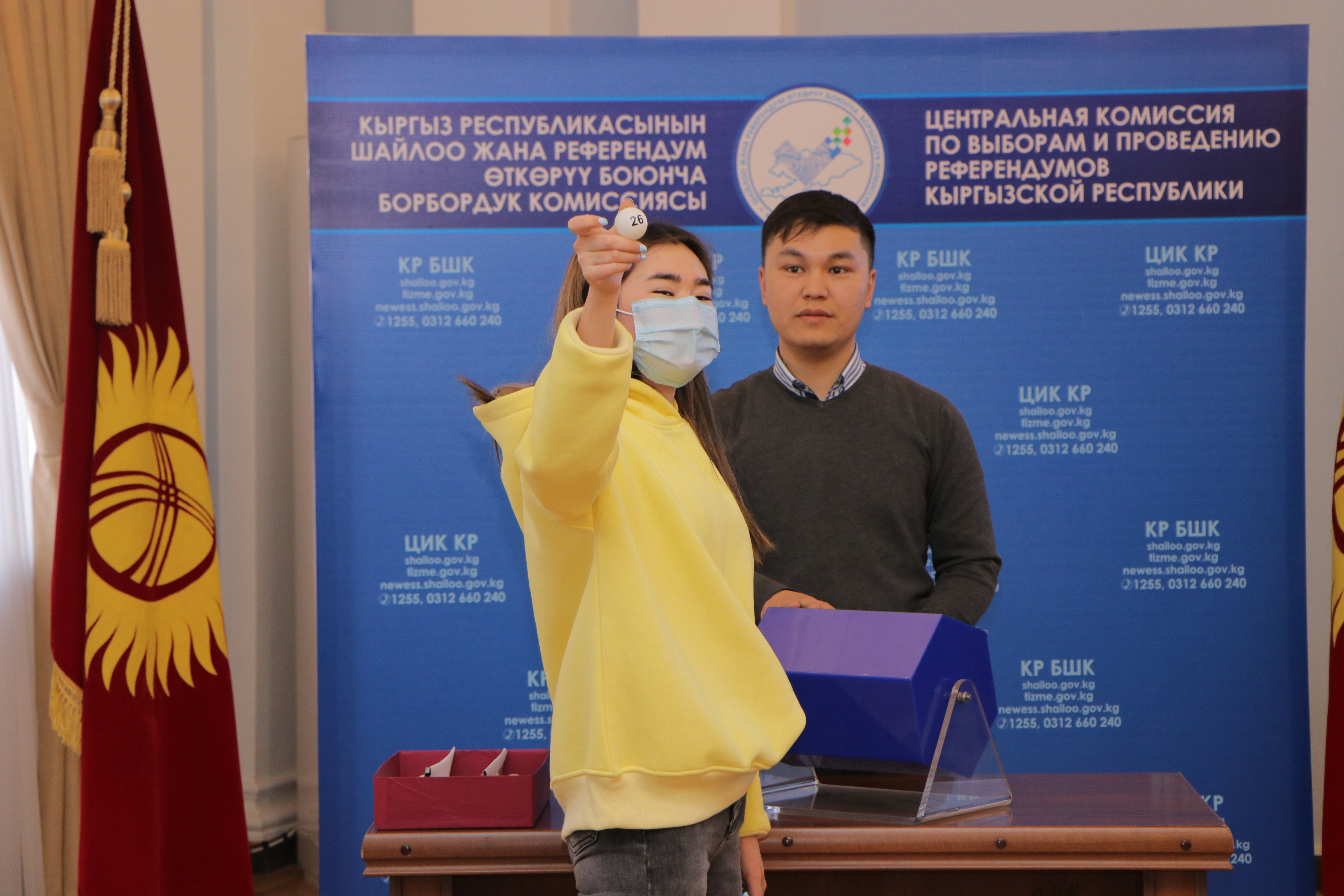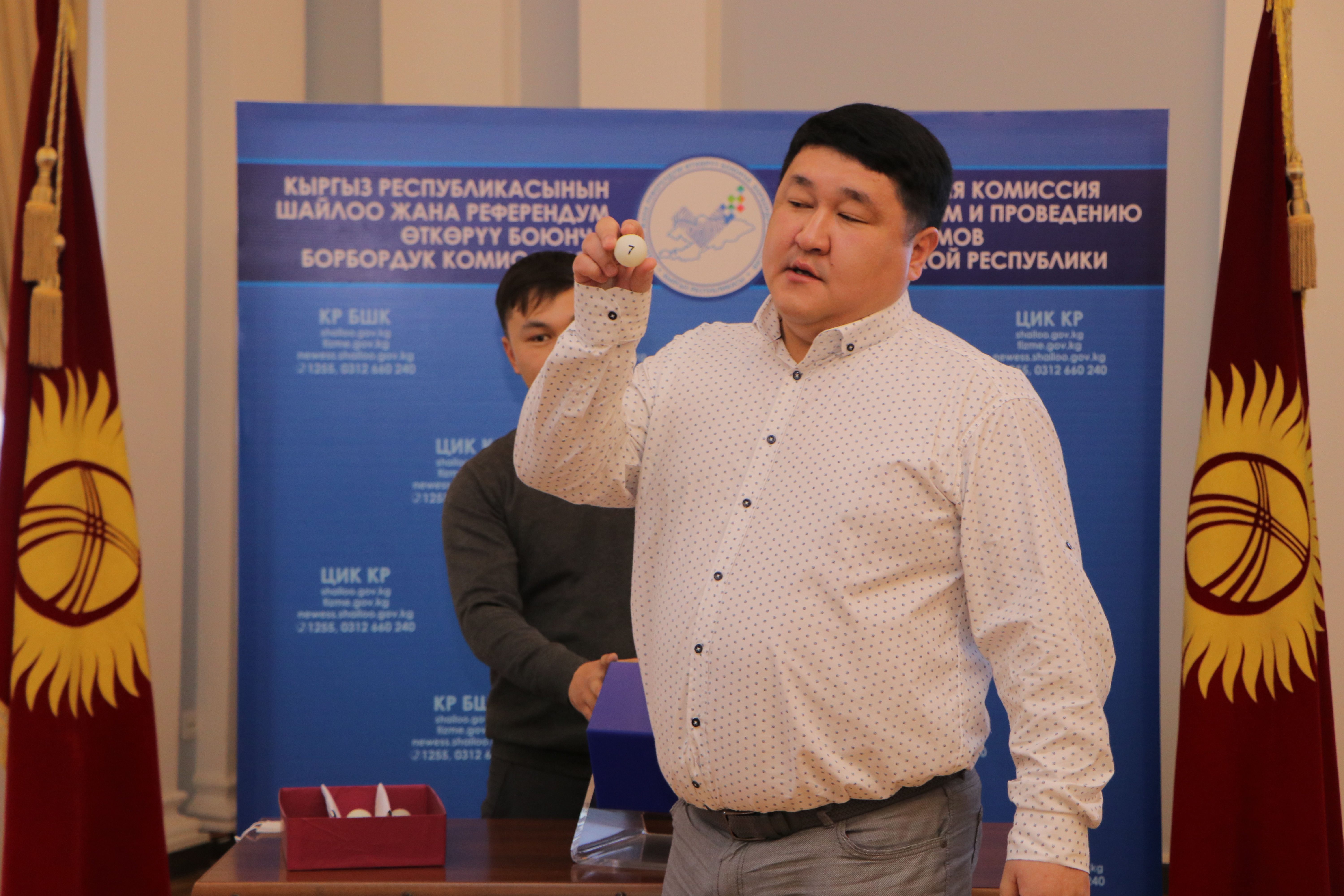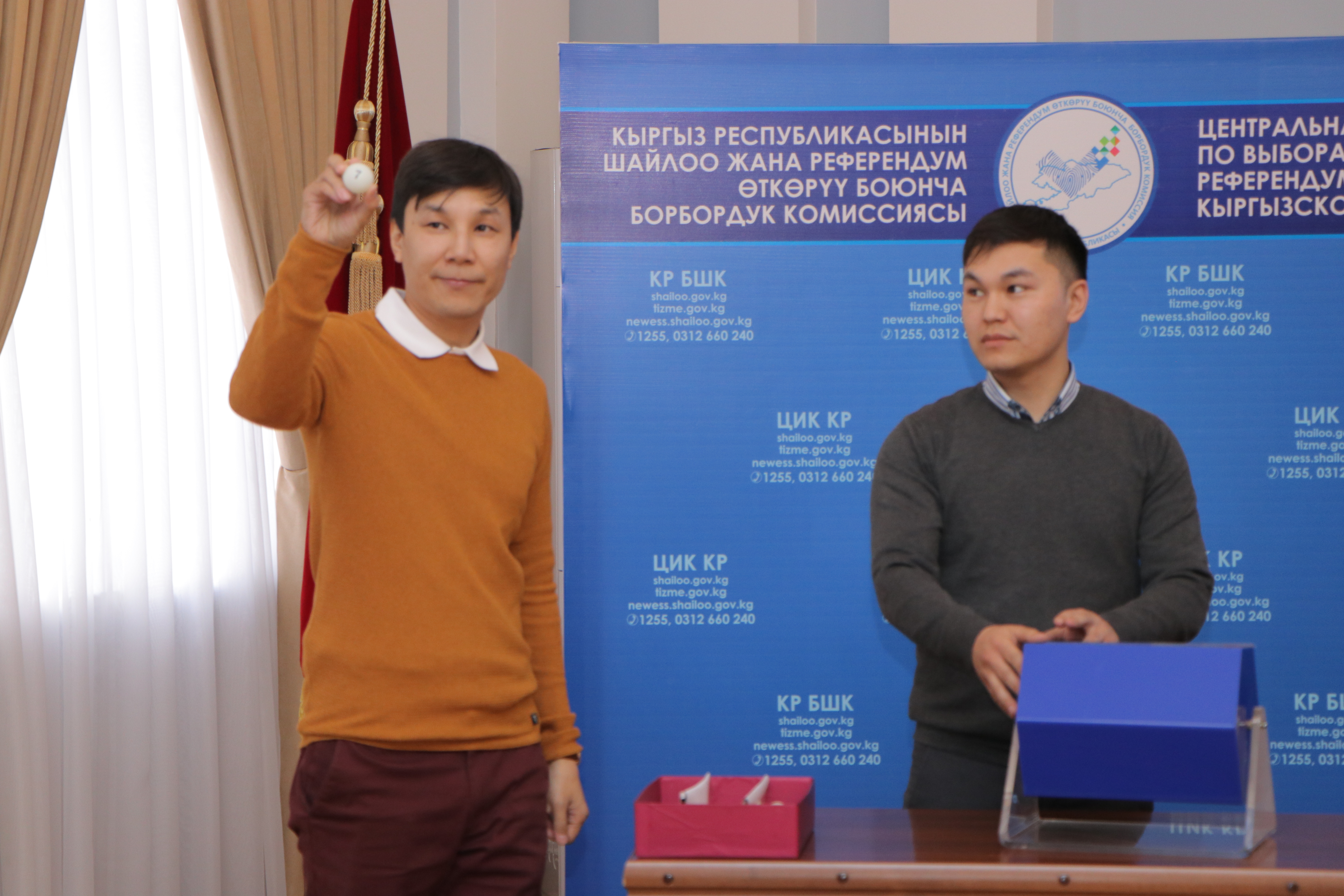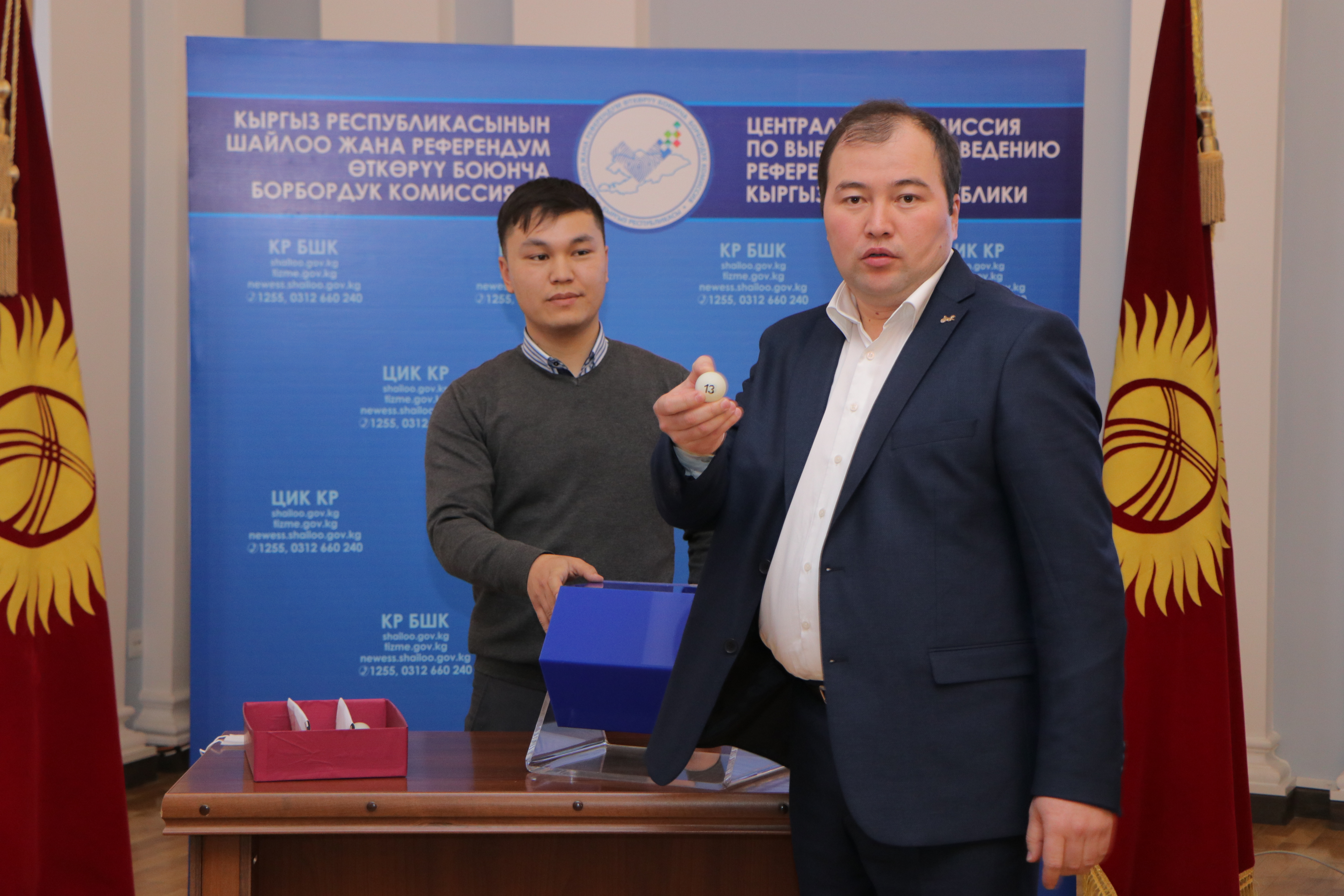 В жеребьевке участвовали кандидаты в депутаты Жогорку Кенеша КР, уполномоченные представители зарегистрированных кандидатов в депутаты ЖК КР, представители средств массовой информации, а также общественные наблюдатели.