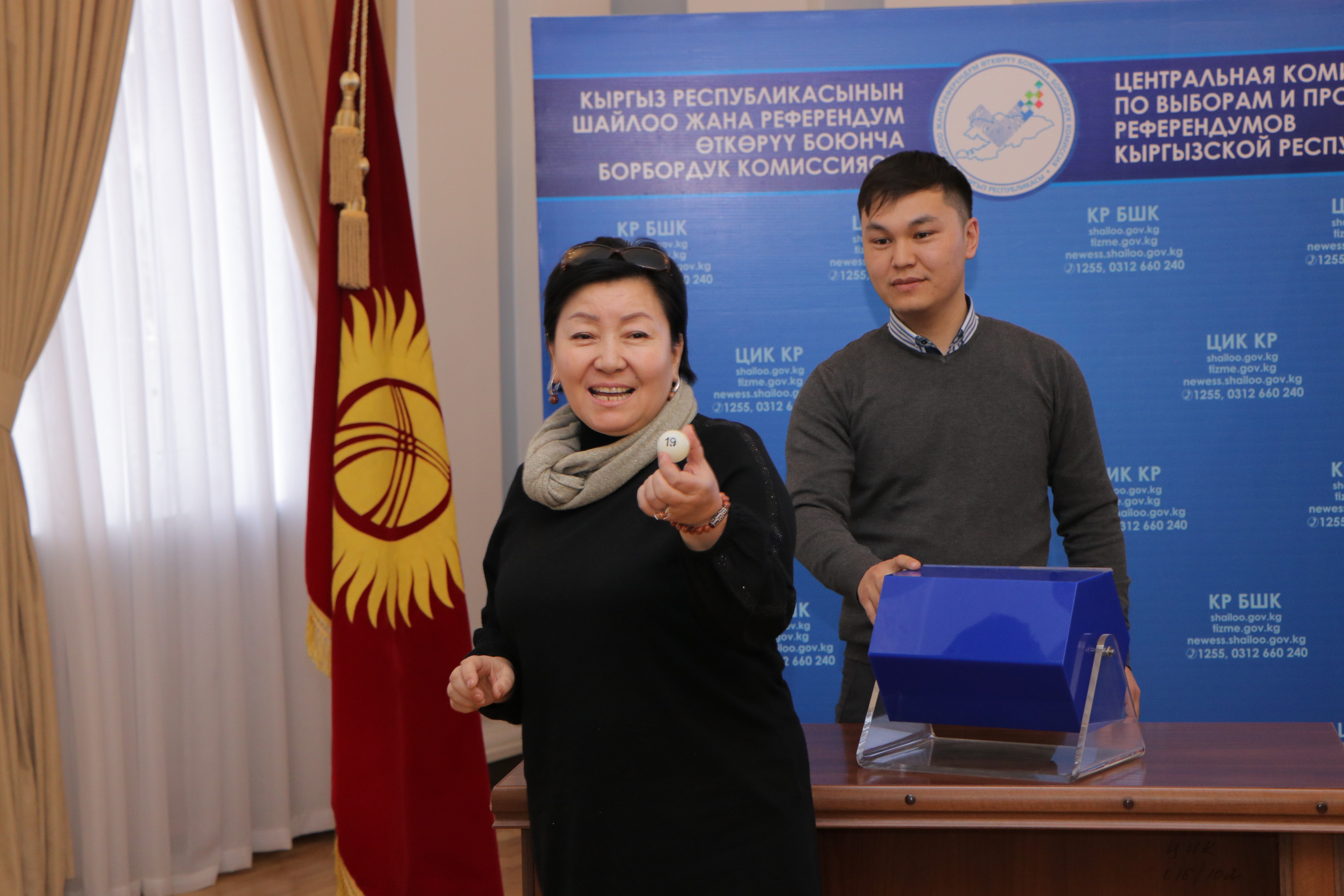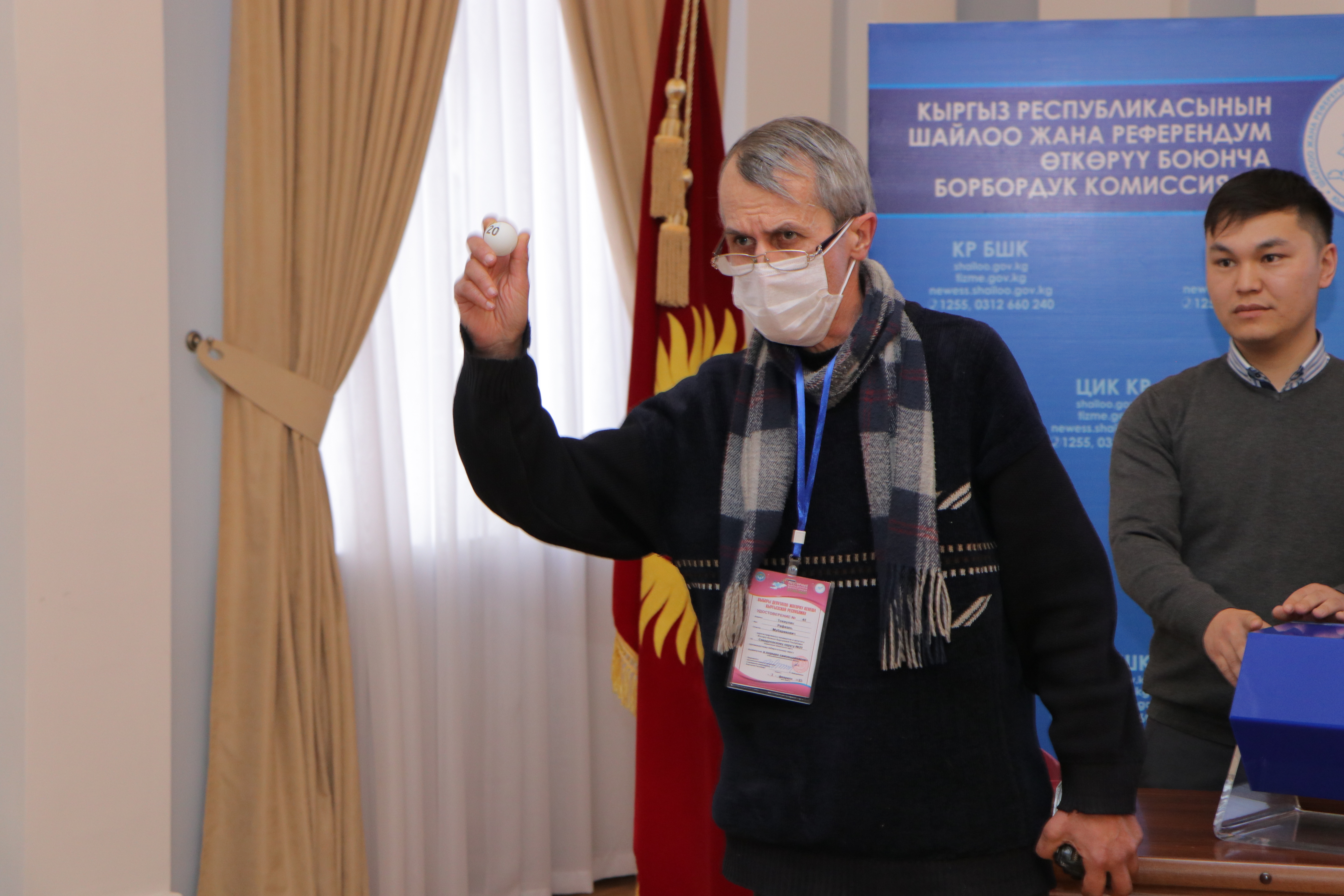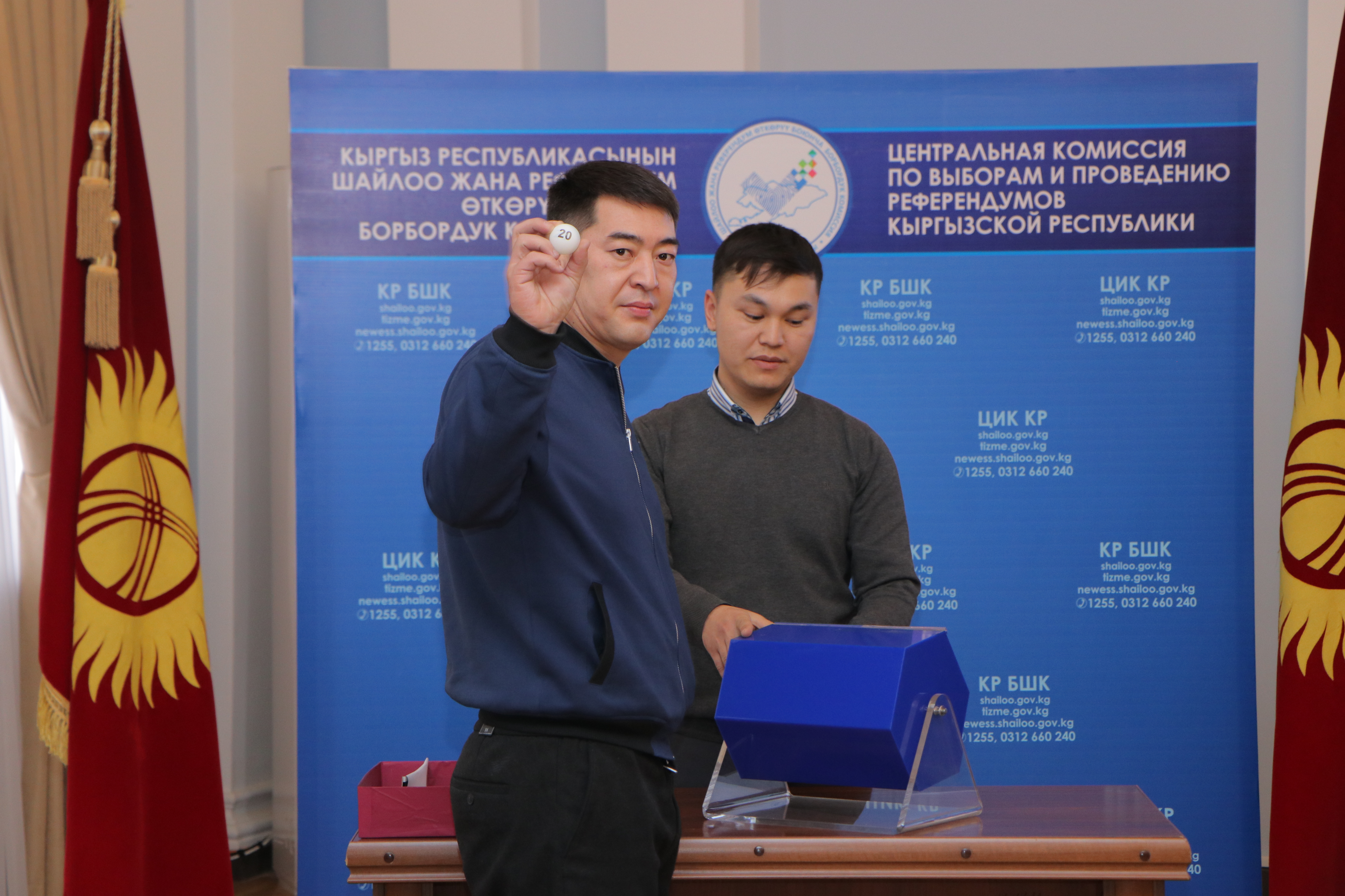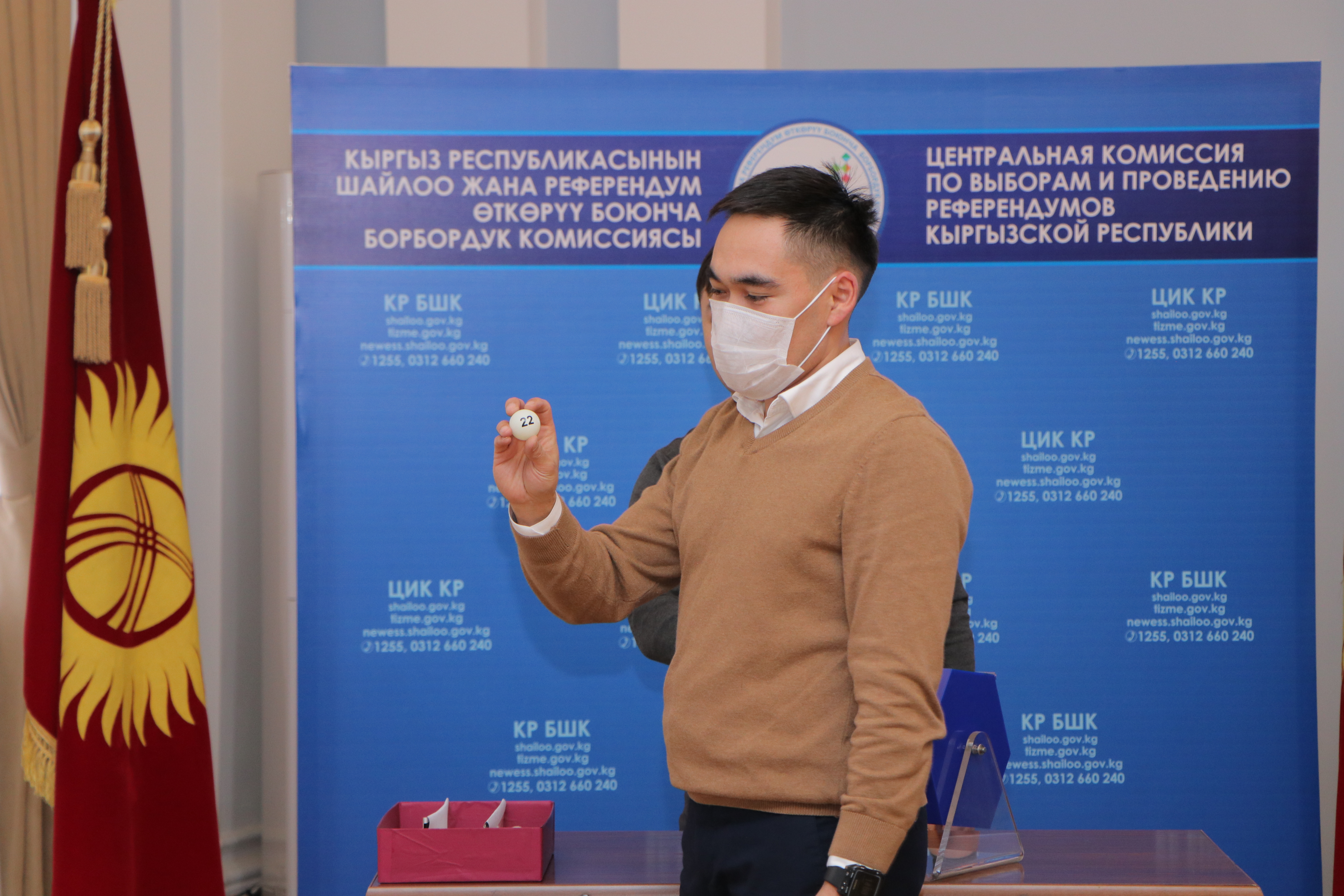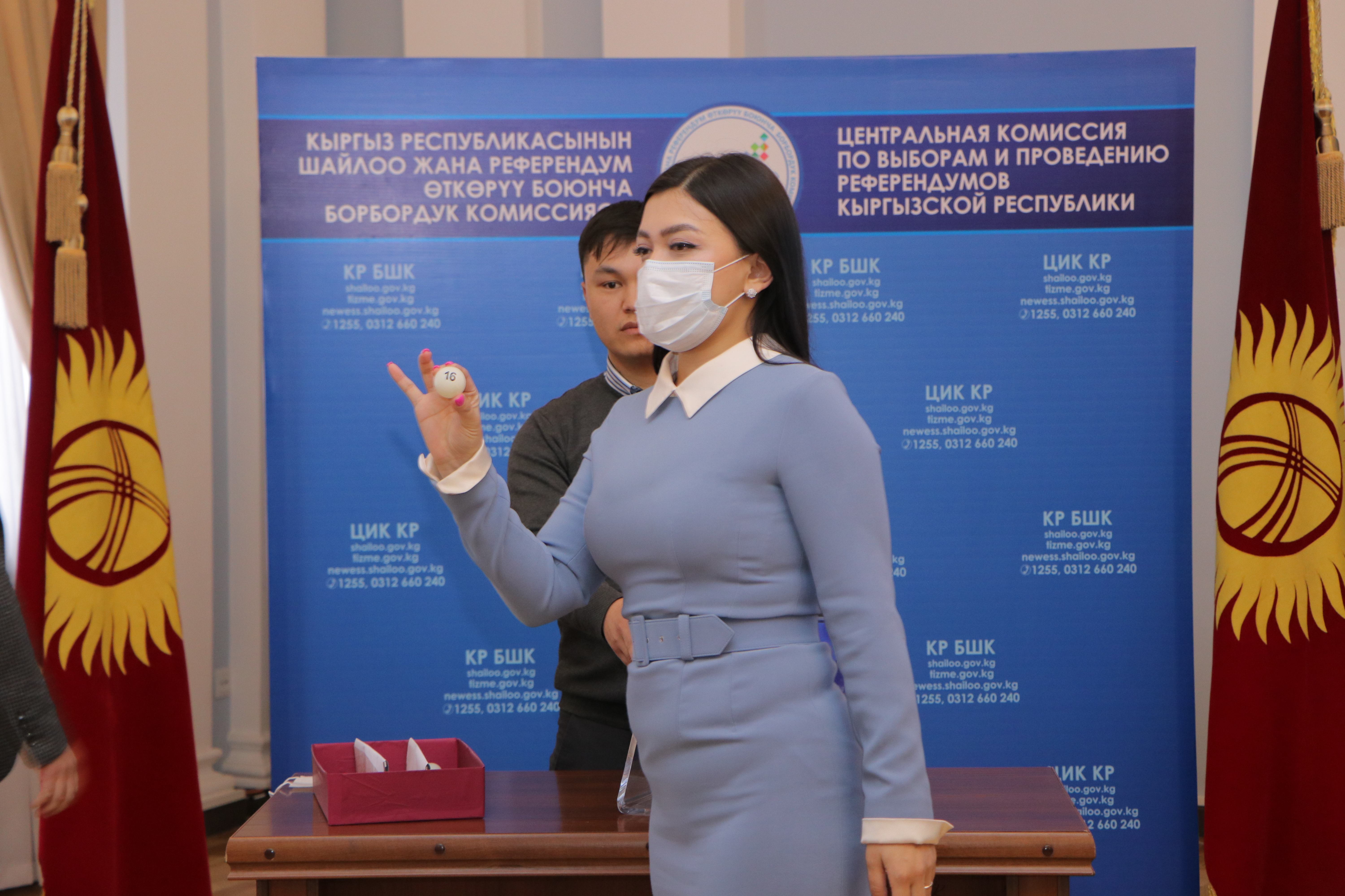 В жеребьевке участвовали кандидаты в депутаты Жогорку Кенеша КР, уполномоченные представители зарегистрированных кандидатов в депутаты ЖК КР, представители средств массовой информации, а также общественные наблюдатели.