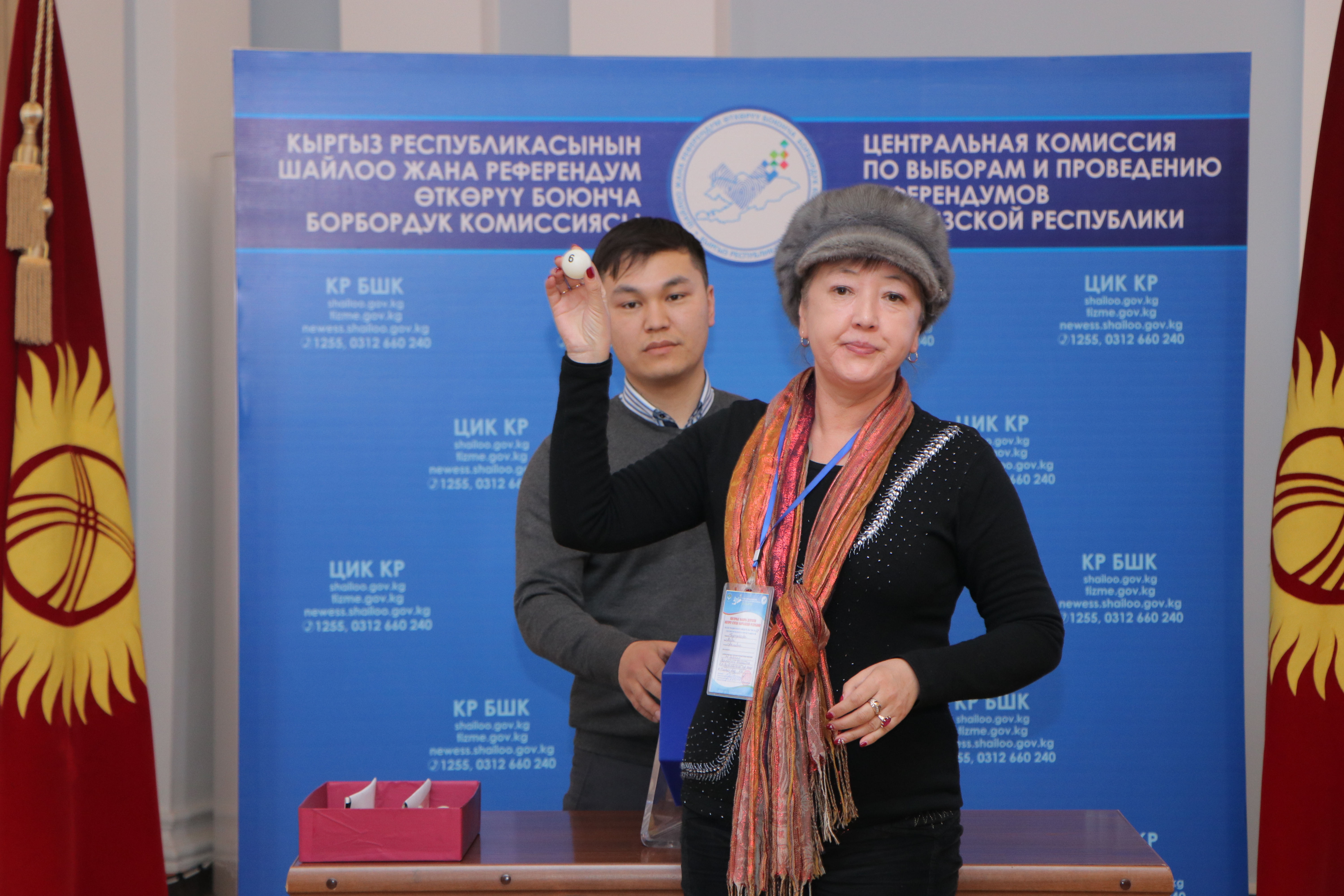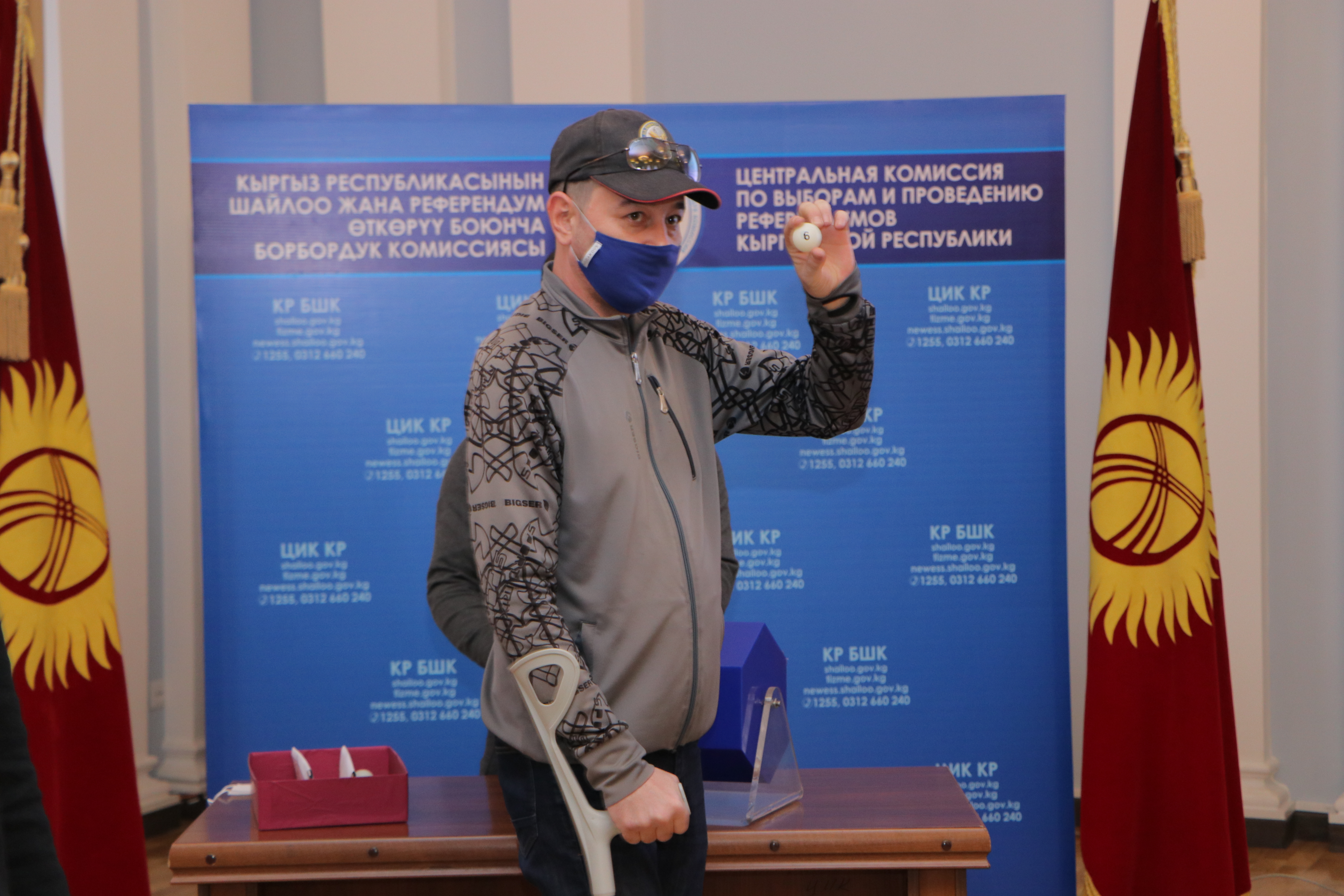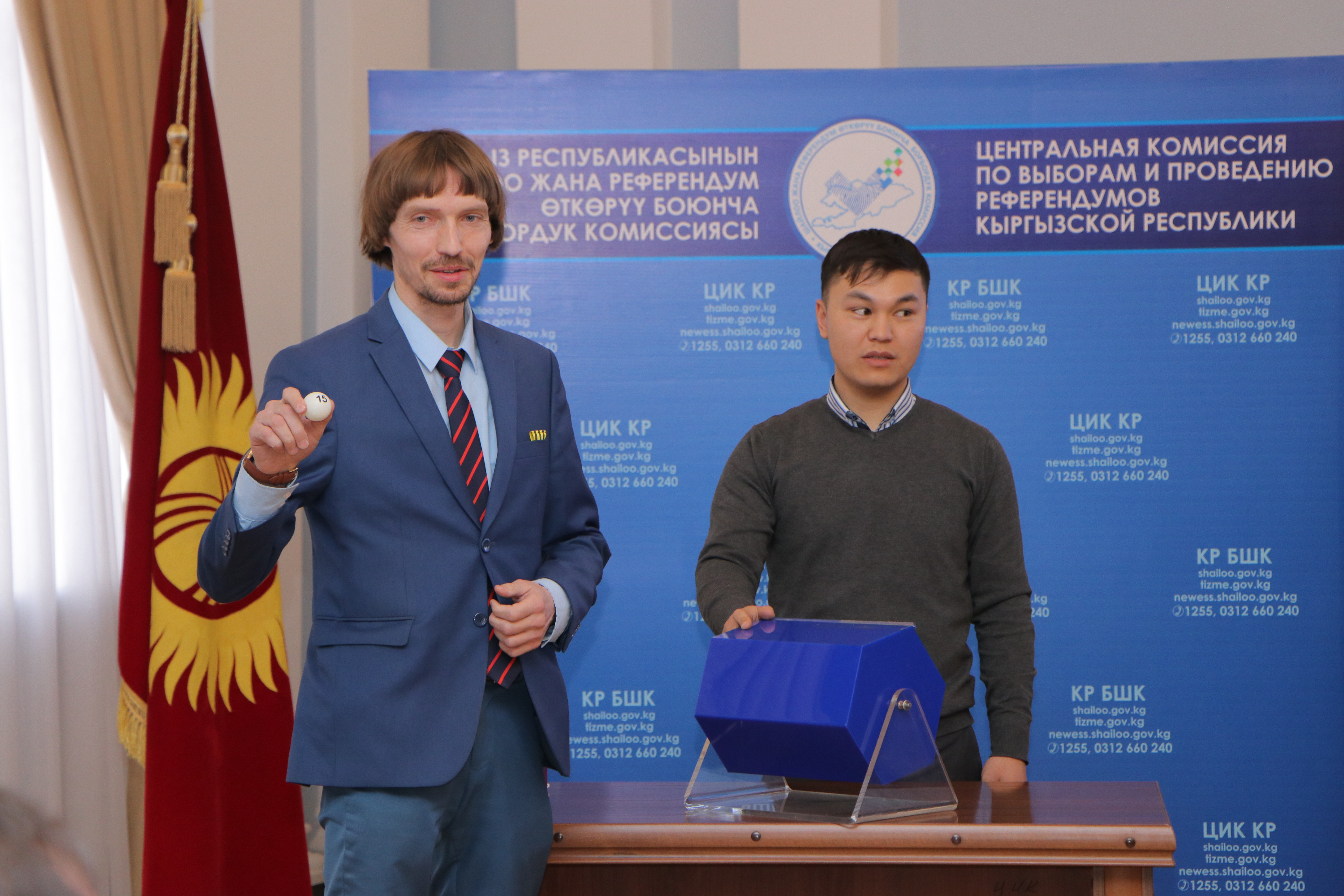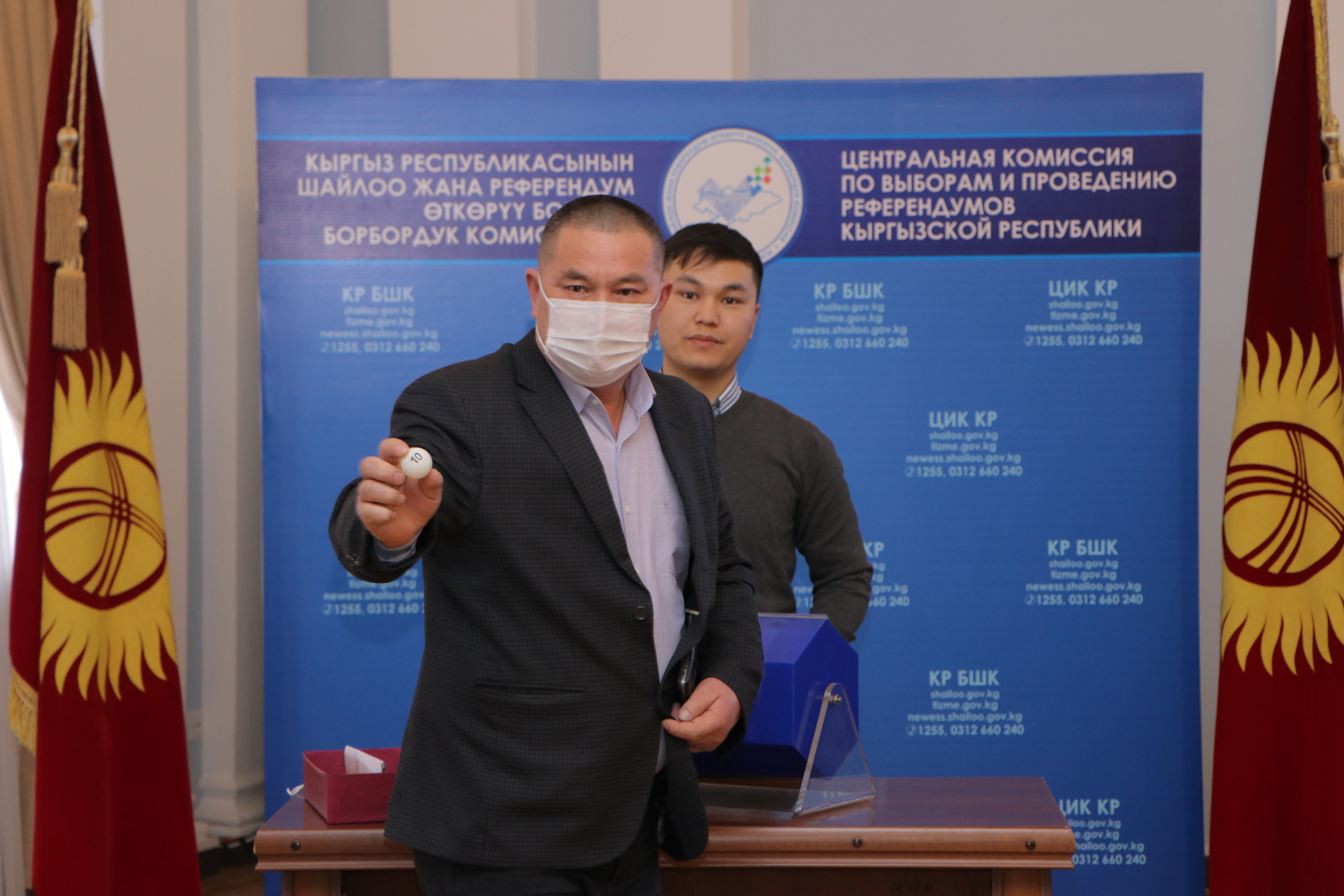 В жеребьевке участвовали кандидаты в депутаты Жогорку Кенеша КР, уполномоченные представители зарегистрированных кандидатов в депутаты ЖК КР, представители средств массовой информации, а также общественные наблюдатели.