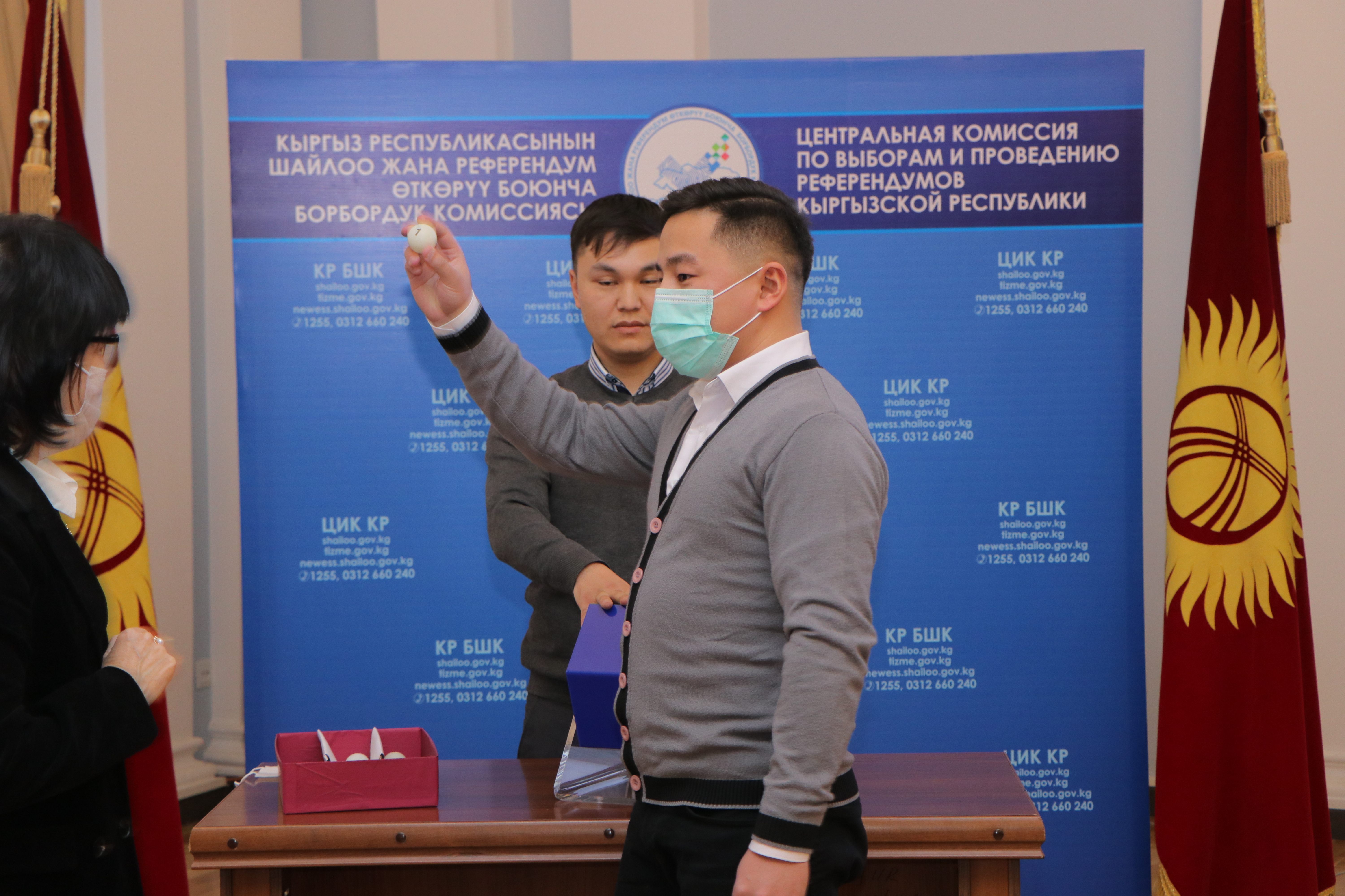 Сегодня, 8 февраля 2022 года, Центральная комиссия по выборам и проведению референдумов Кыргызской Республики провела жеребьевку по определению очередности кандидатов в избирательном бюллетене на повторных выборах депутатов Жогорку Кенеша Кыргызской Республики по Первомайскому № 27 и Свердловскому № 29 одномандатным избирательным округам, назначенных на 27 февраля 2022 года.