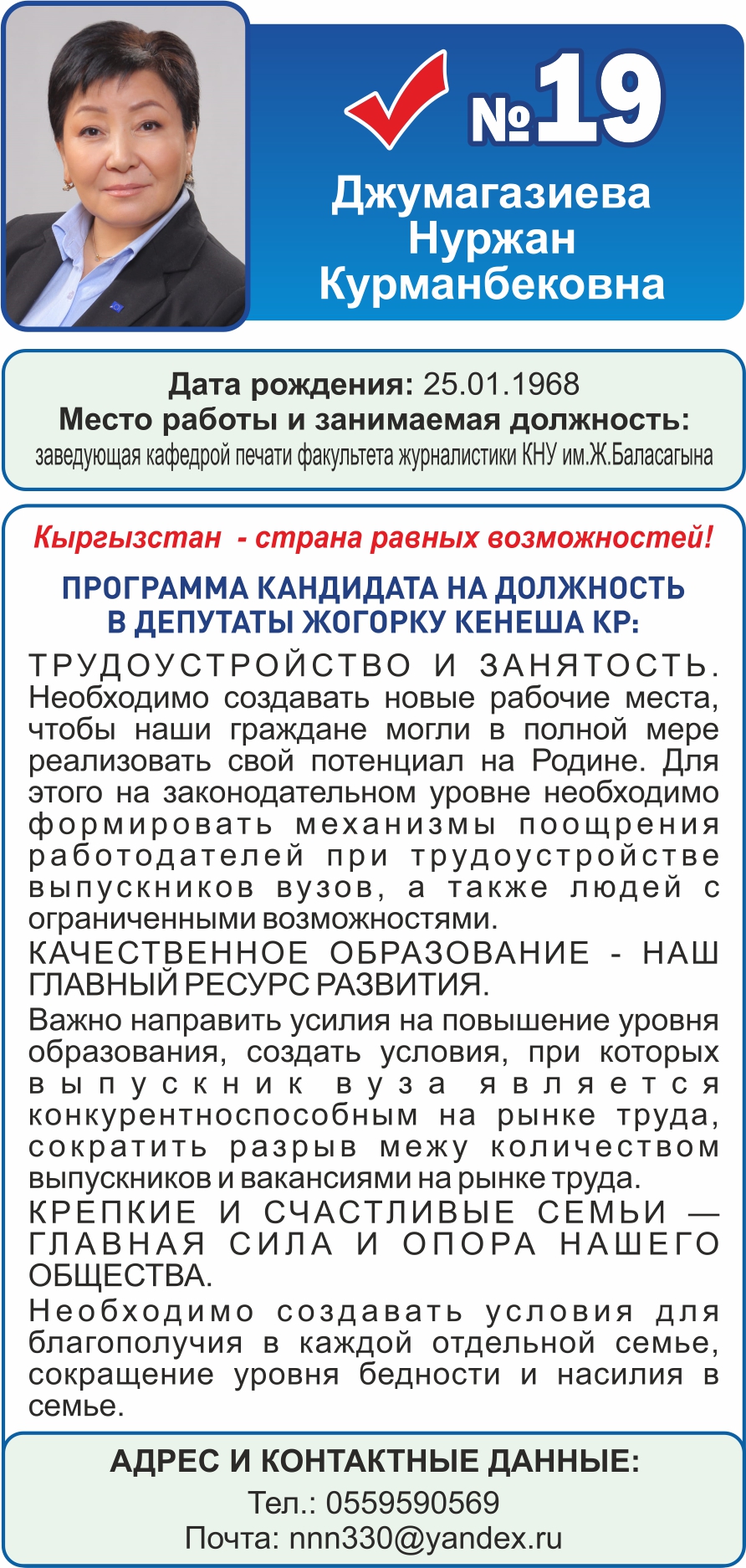 Вот список кандидатов в депутаты Жогорку Кенеша Кыргызской Республики: