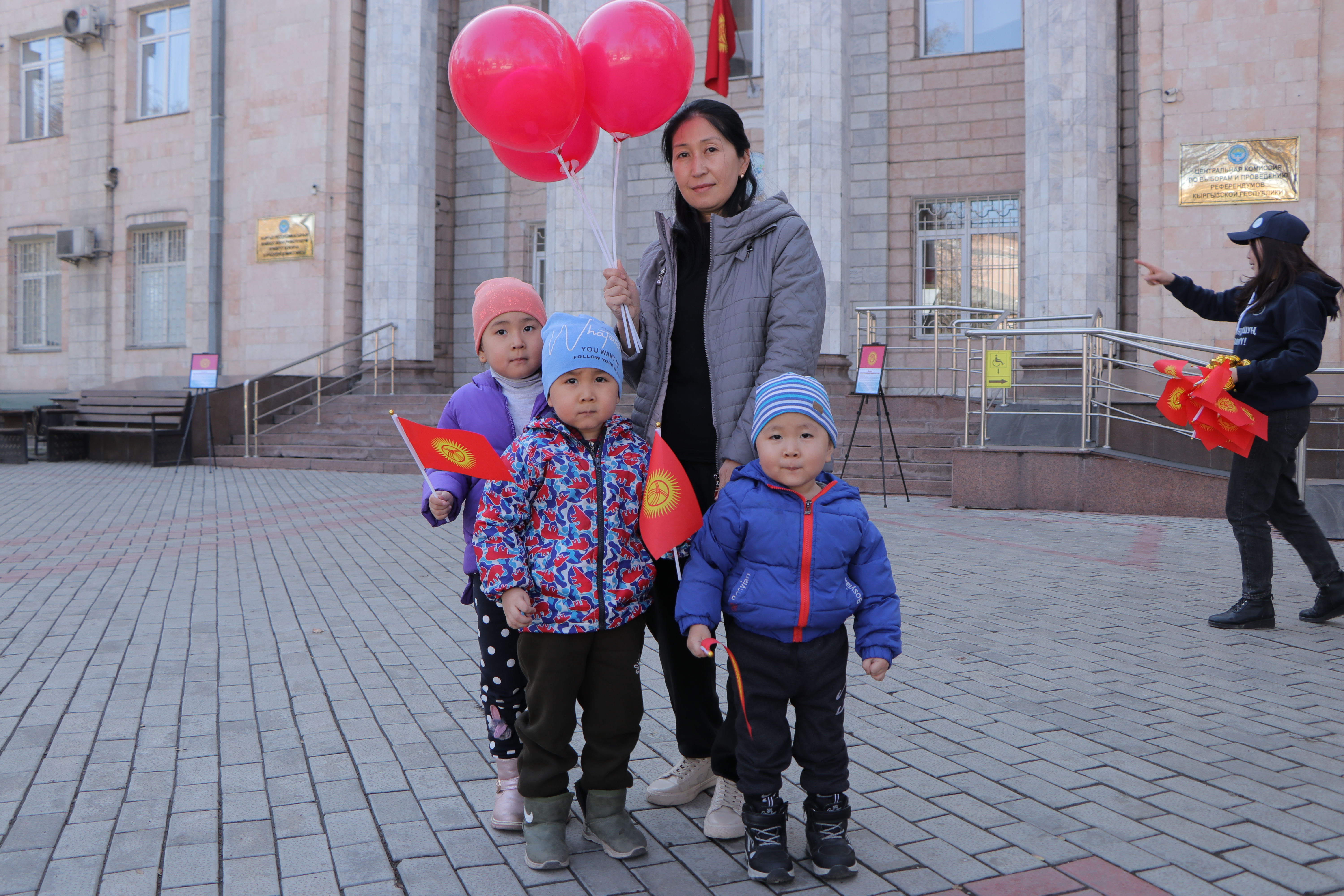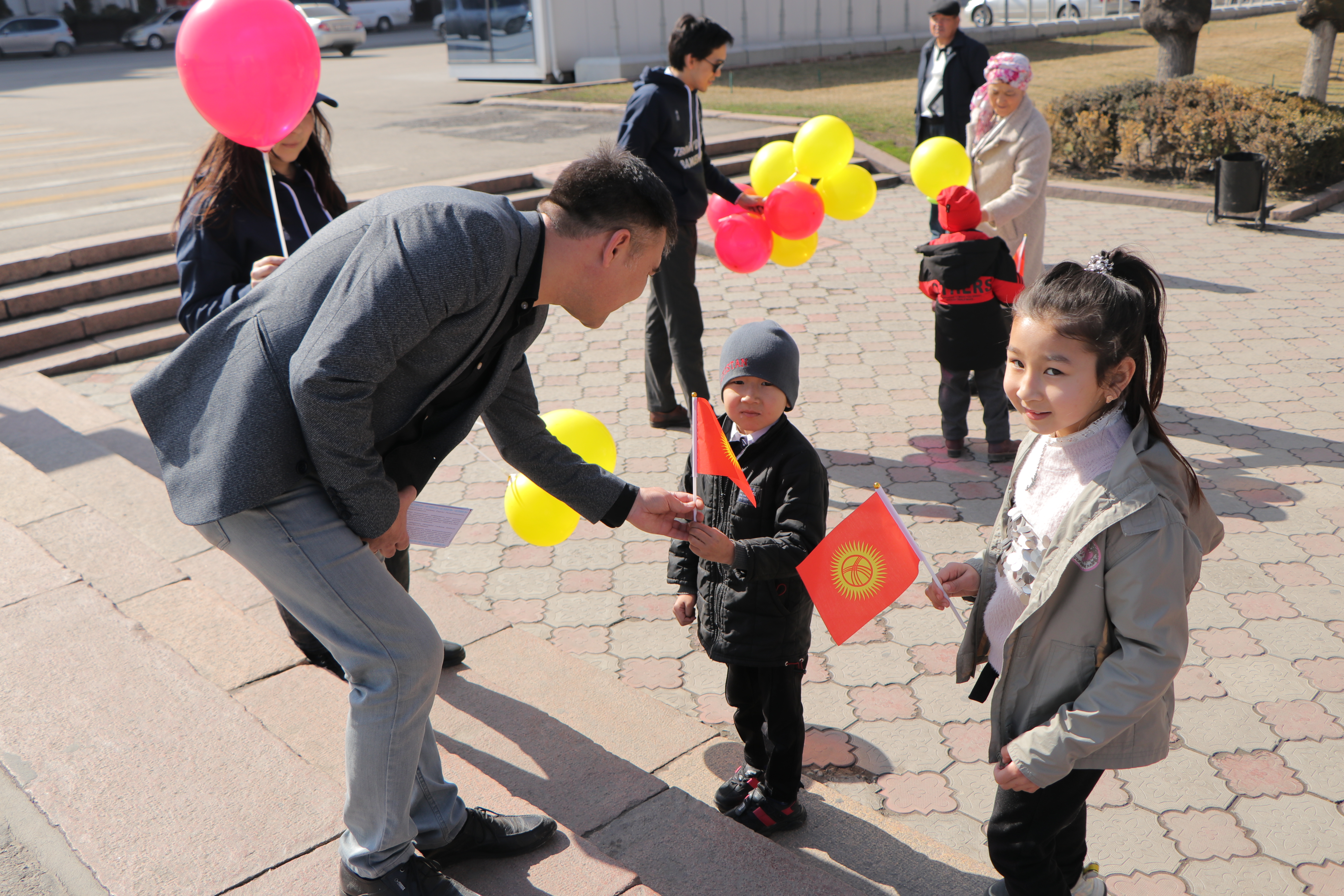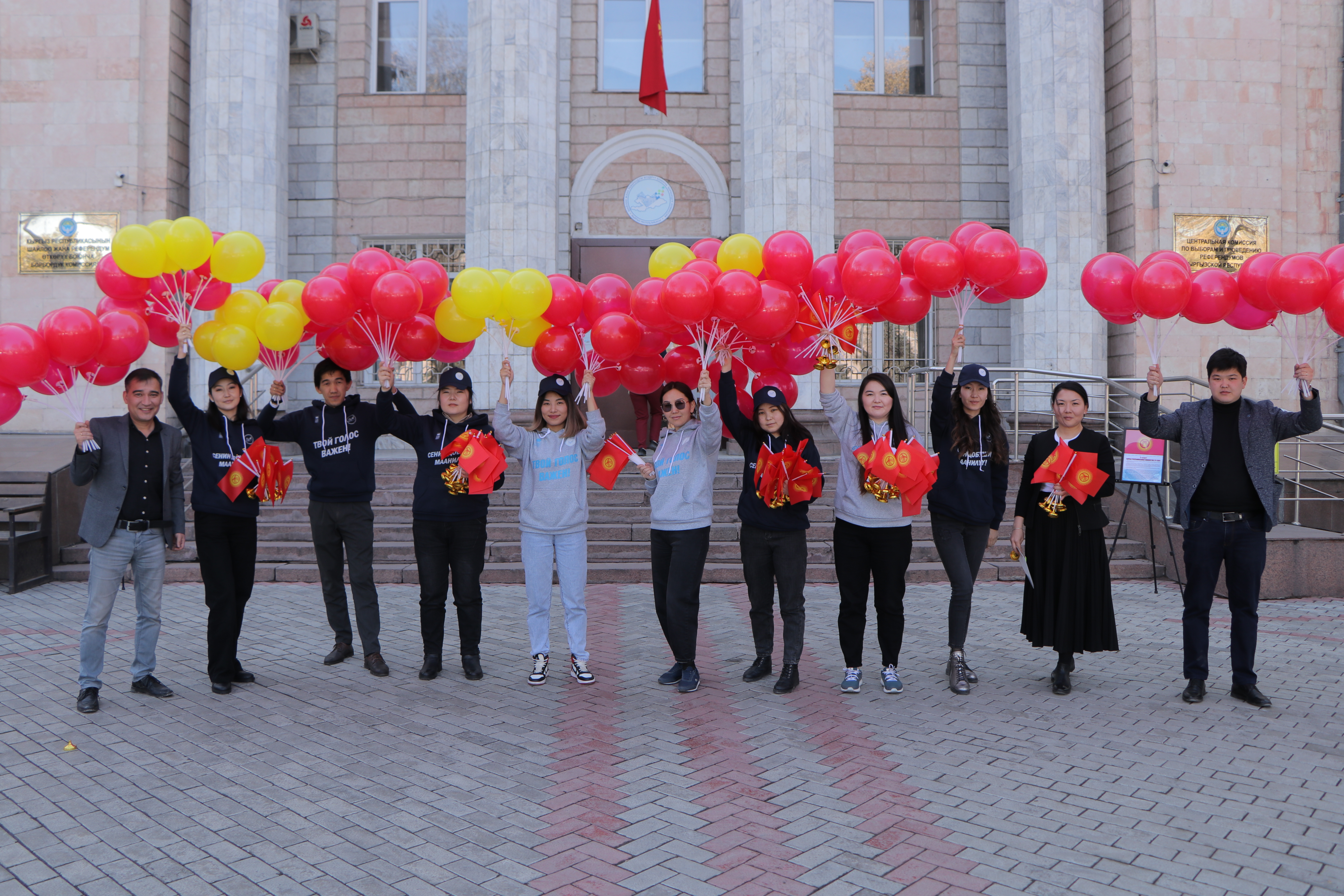 Также сотрудники аппарата ЦИК КР организовали флешмоб. На оживлённых улицах города Бишкек и на центральной площади Ала-Тоо горожанам и гостям столицы раздавали красно-желтые шары, которые передавали цветовую гамму флага, поздравительные открытки с краткой историей создания государственной символики, а также сам символ сегодняшнего праздника – флаг Кыргызской Республики.