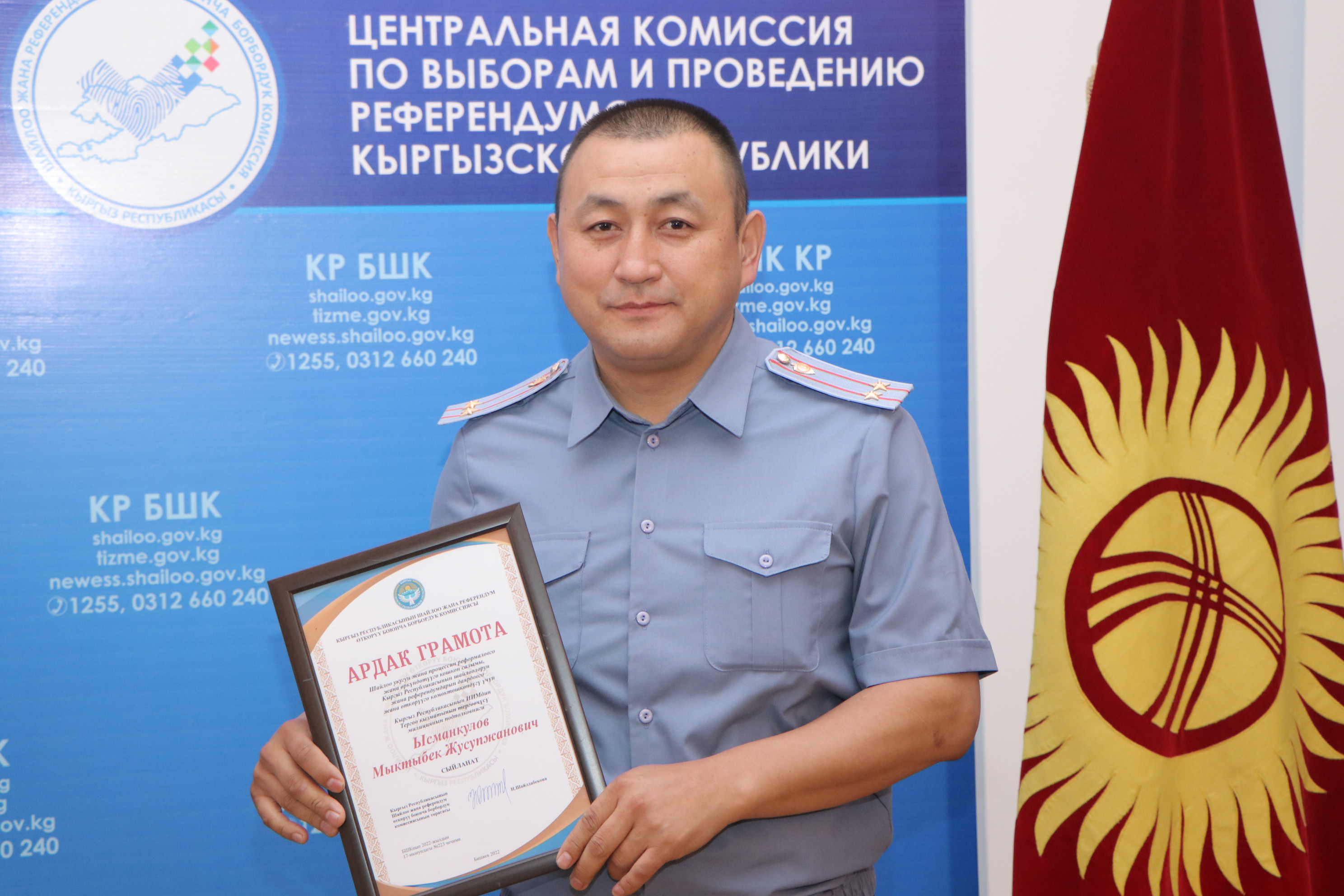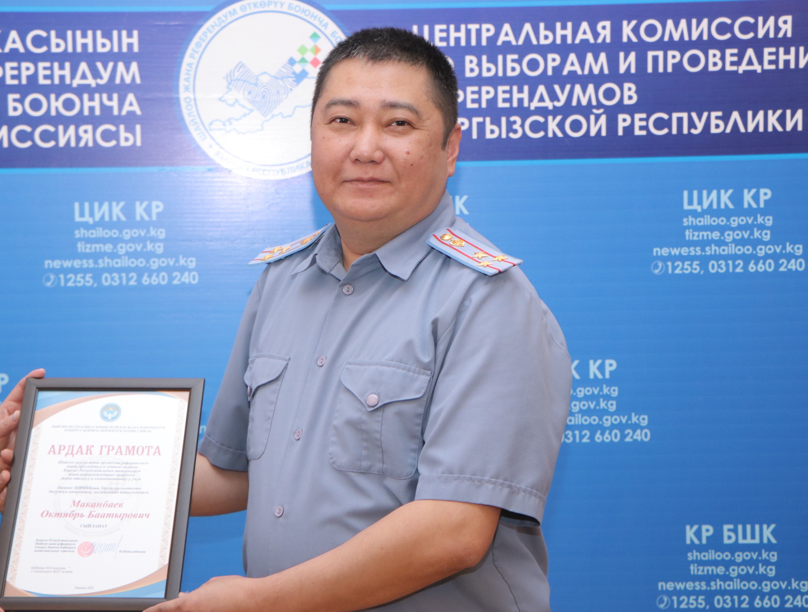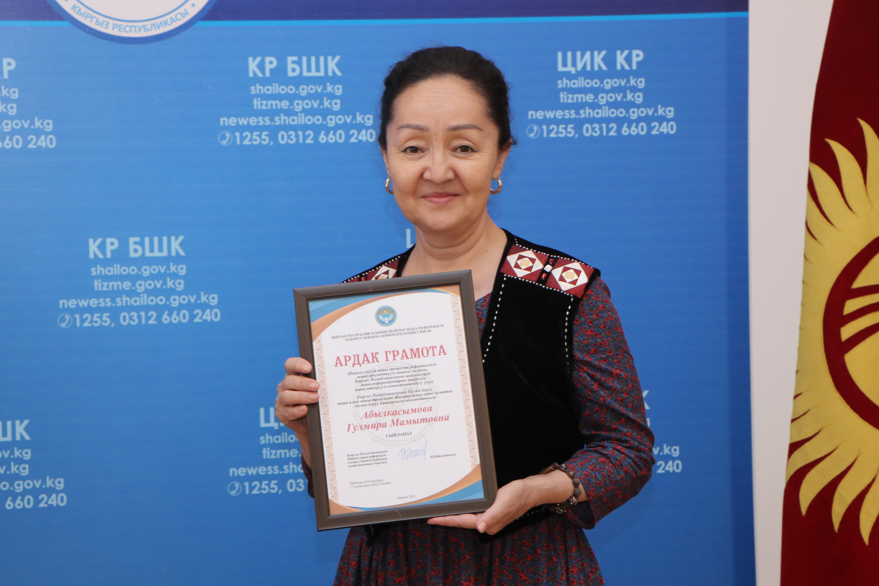 За вклад в реформирование и совершенствование избирательного права и процесса, содействие в подготовке и проведении выборов и референдумов Кыргызской Республики, Центральная комиссия по выборам и проведению референдумов Кыргызской Республики в честь Дня работника государственной и муниципальной службы Кыргызской Республики наградила Почетной грамотой ЦИК представителей государственных органов.