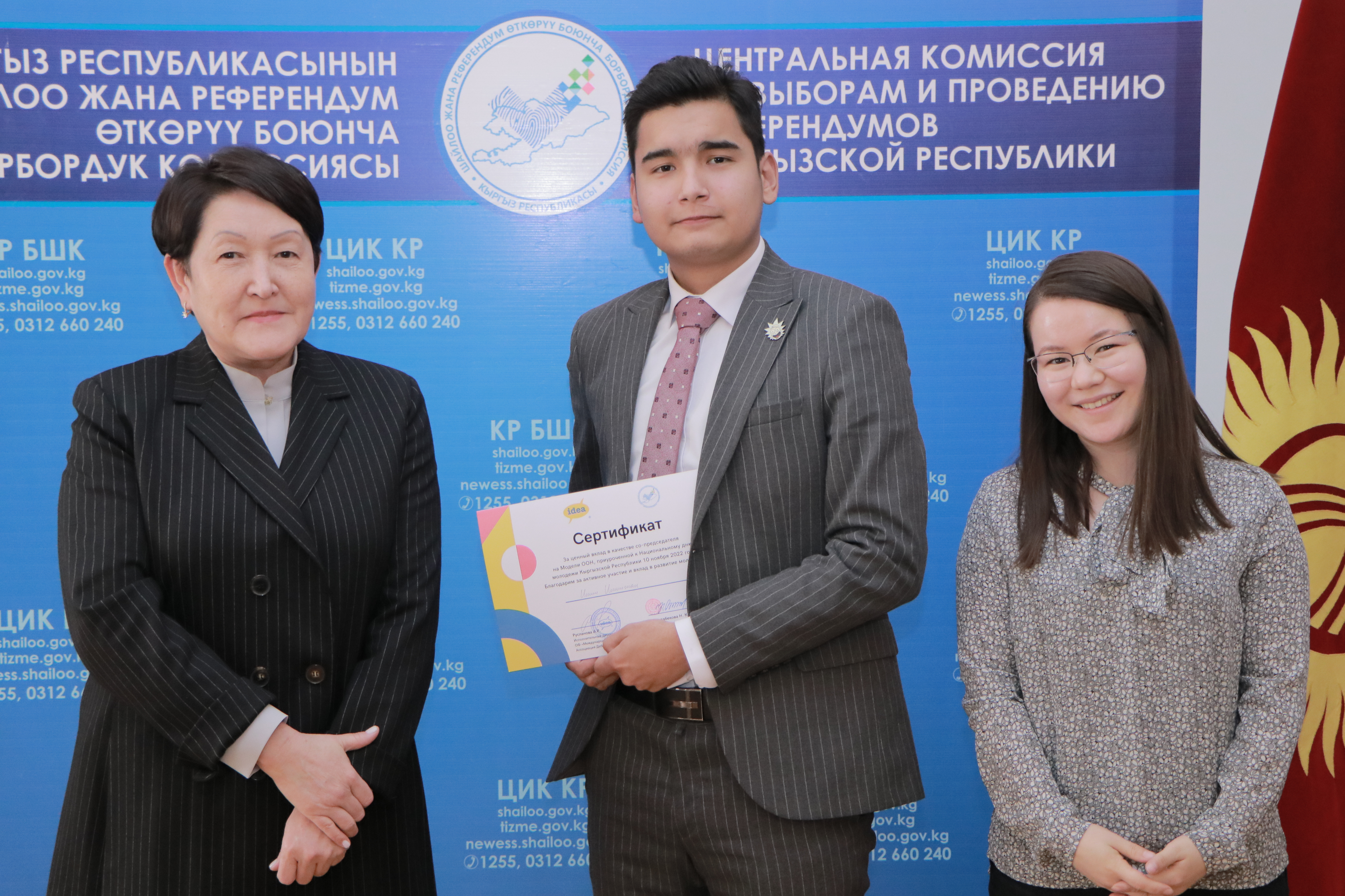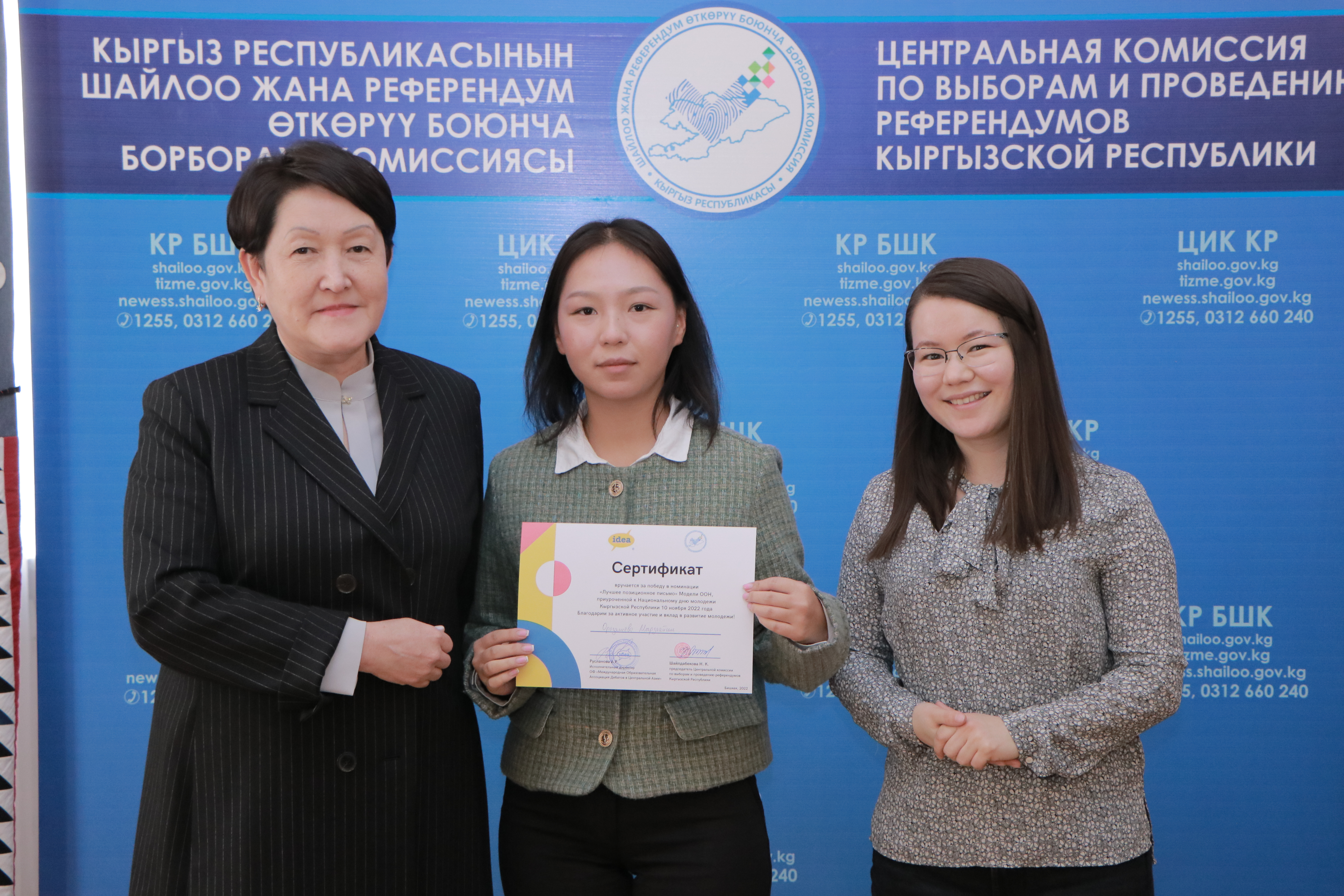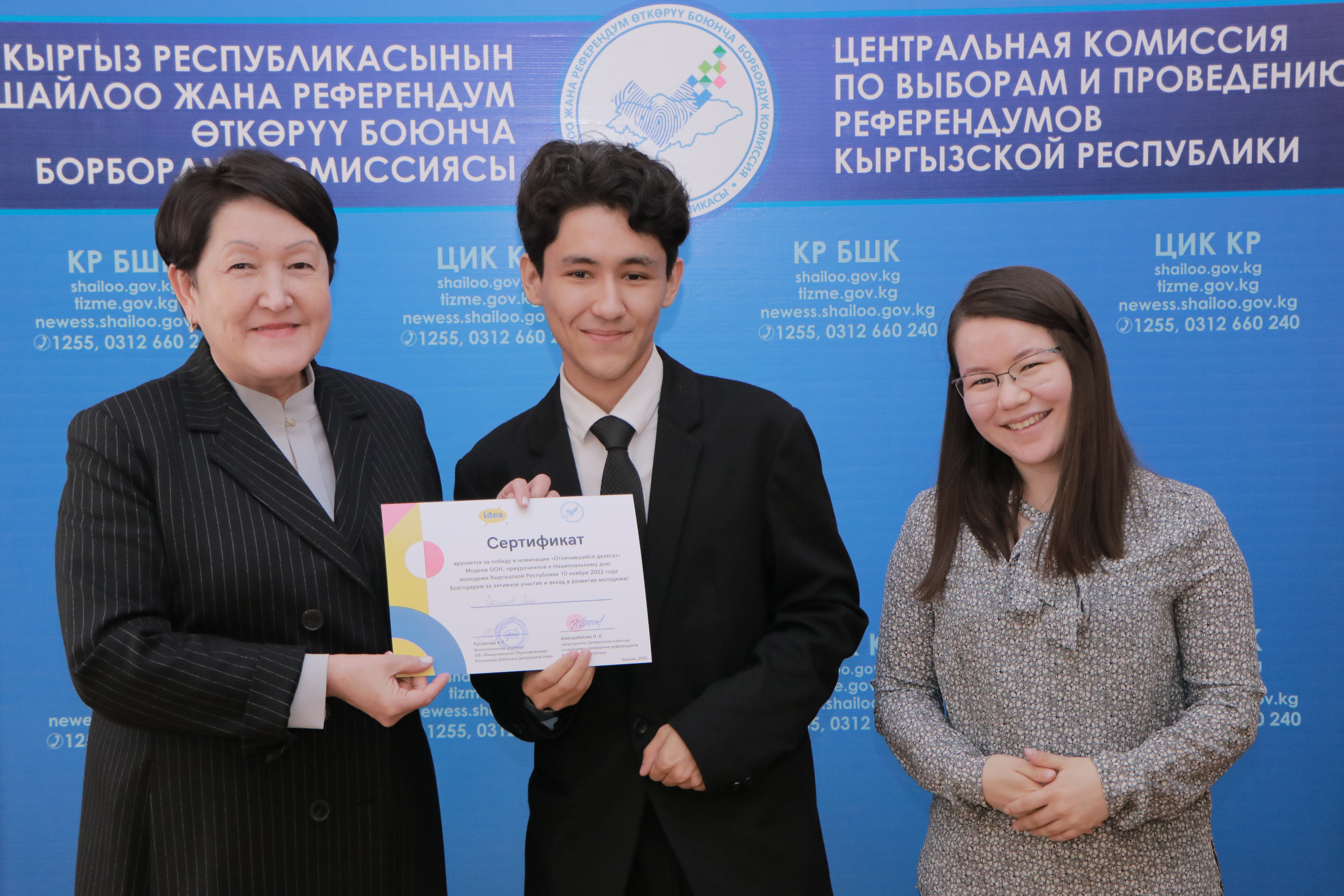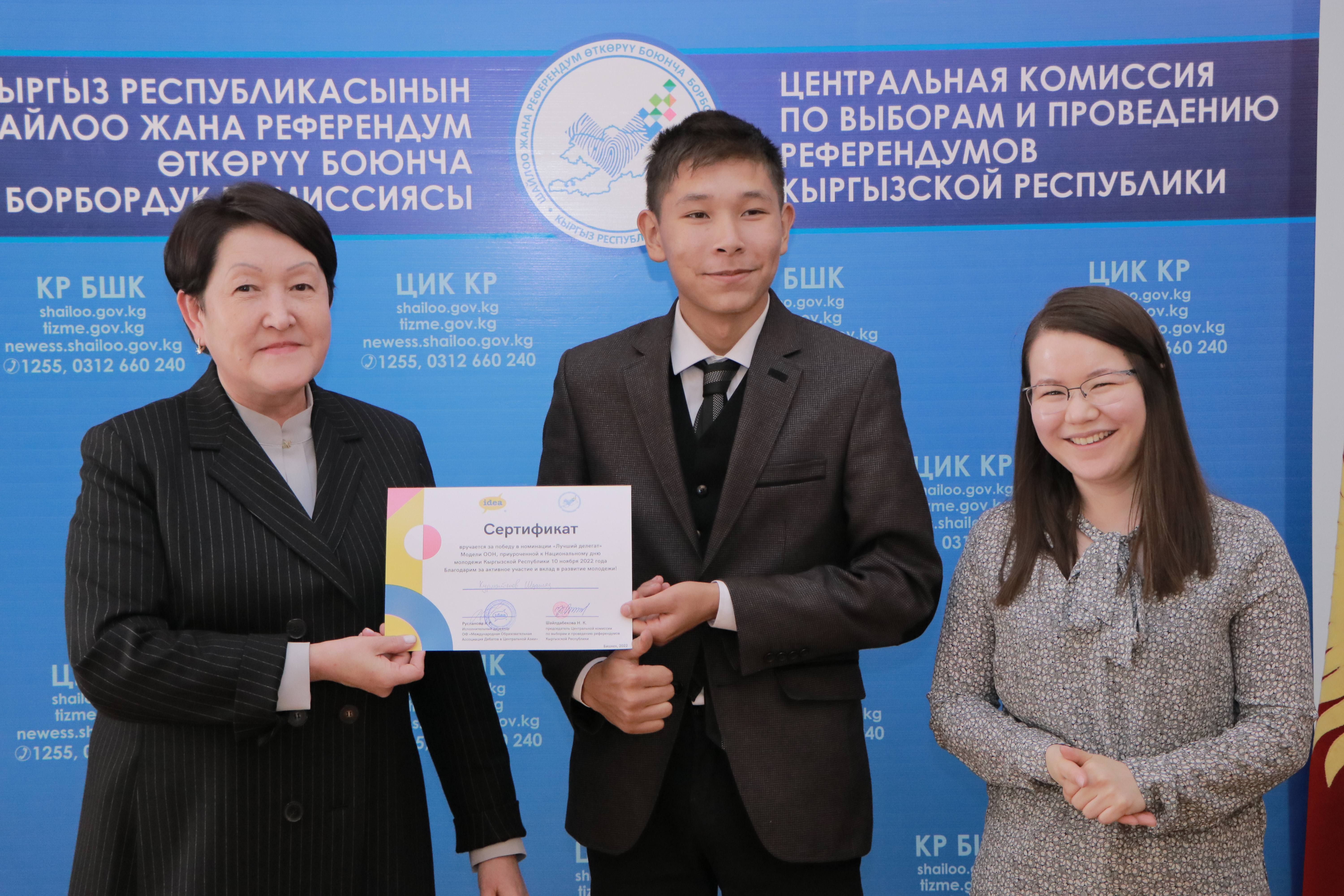 В честь празднования Всемирного дня молодежи и Дня молодежи Кыргызстана ЦИК КР совместно с Международной образовательной ассоциацией дебатов в Центральной Азии (IDEA CA) провела мероприятие в формате мини-модели ООН.
