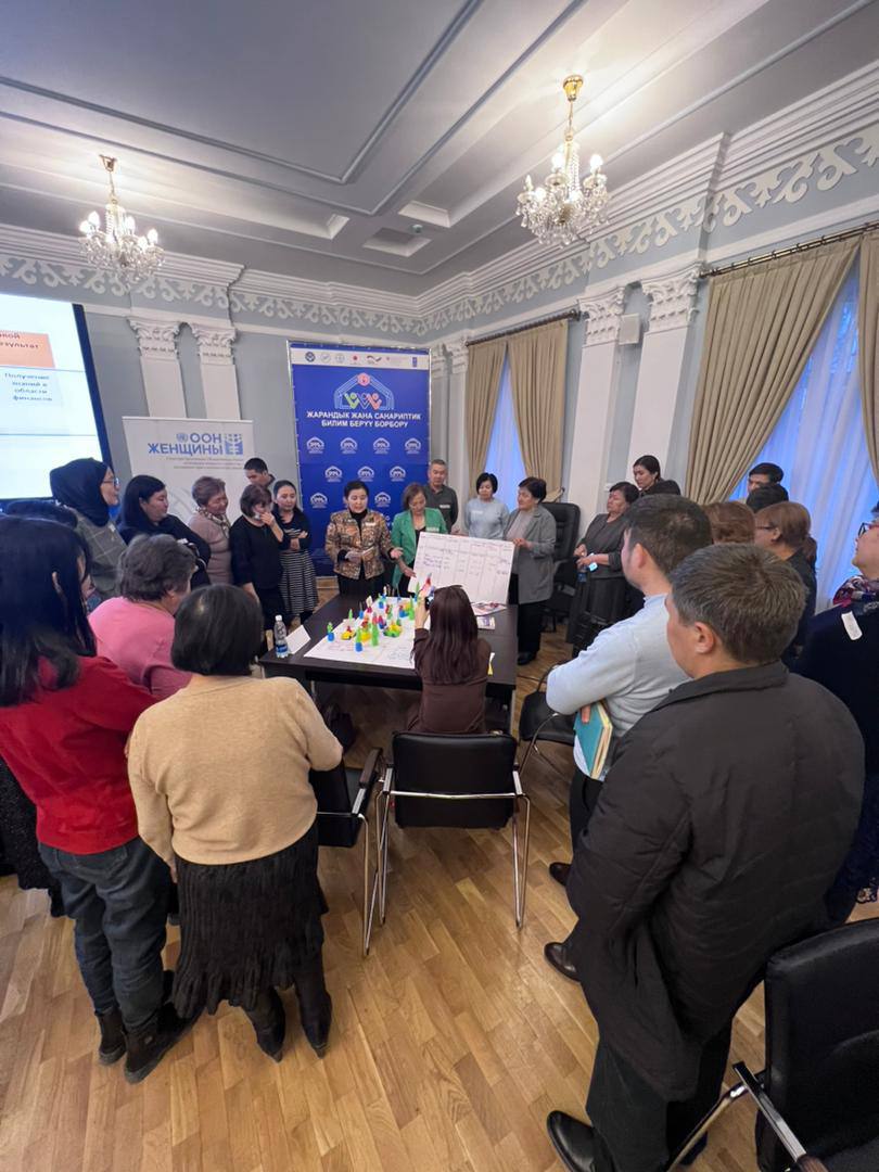 «ООН-Женщины» в КР в целях повышения потенциала работников ЦГЦО в регионах по работе с населением по гражданскому образованию, в частности по ведению диалога с местным населением, выявлению проблем и выработке совместных решений по приоритетным сферам развития, повышению гражданской позиции каждого члена местного сообщества и т.д.