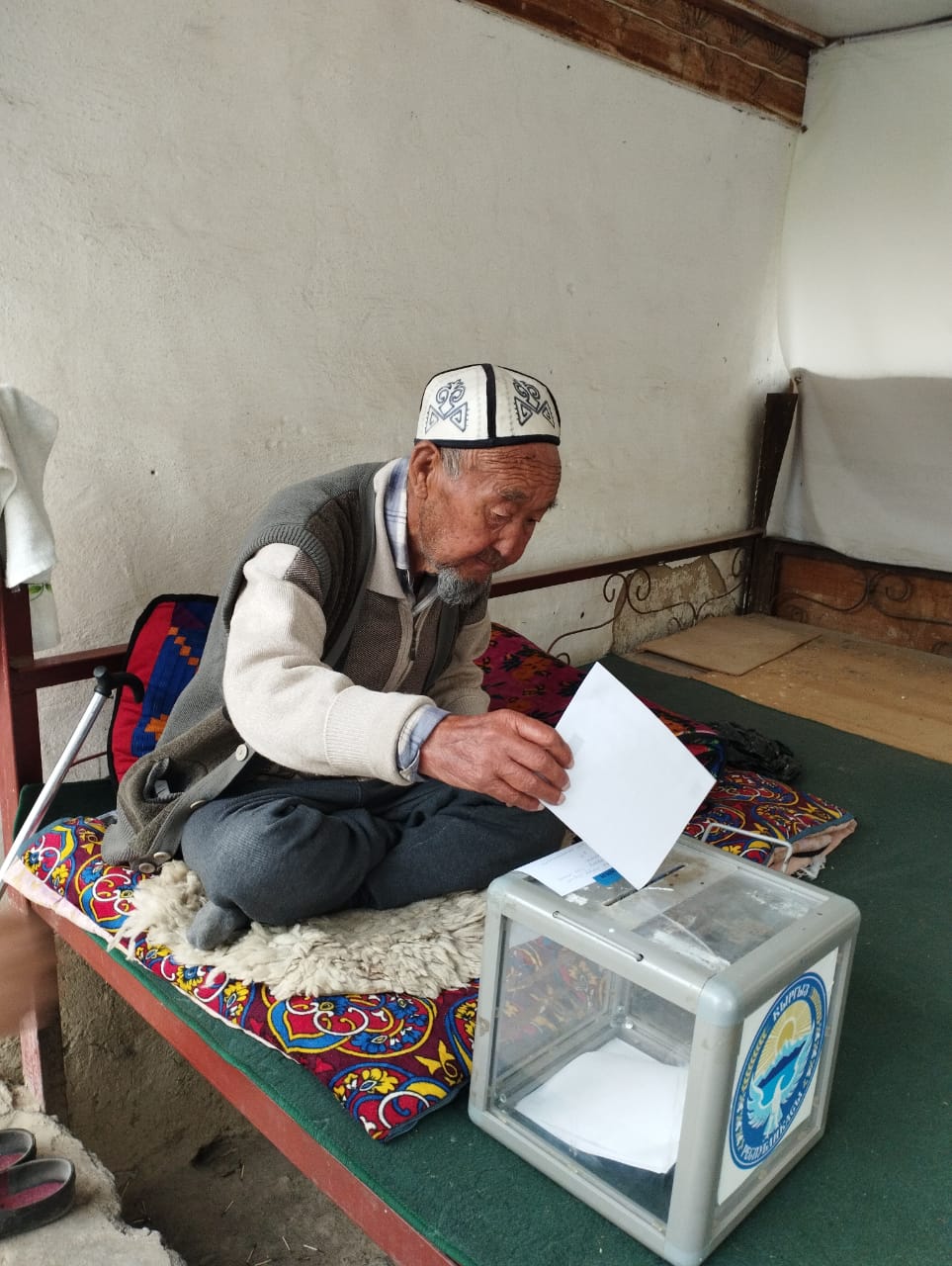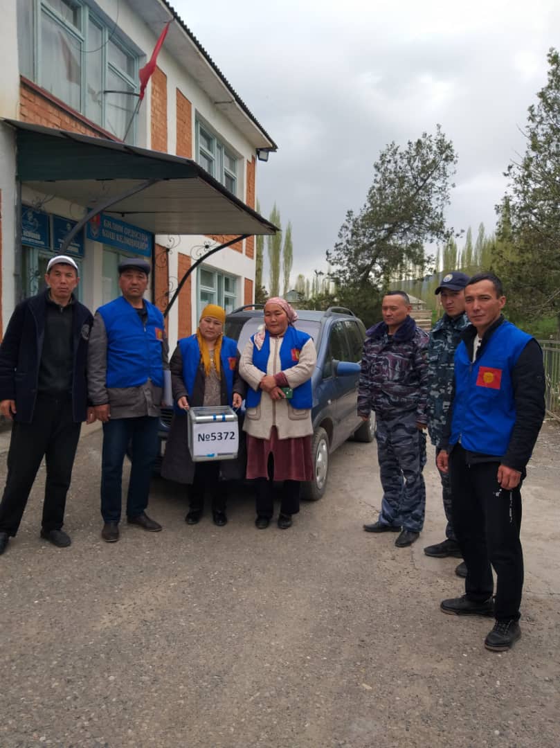 По данным ЦИК КР, всего в 11 из 14 айылных кенешей в 24 из 53 УИК поступило 153 заявления (из них: по старости - 75, по инвалидности - 15, по болезни – 63) от избирателей о предоставлении возможности проголосовать вне помещения для голосования.