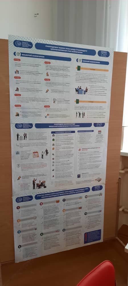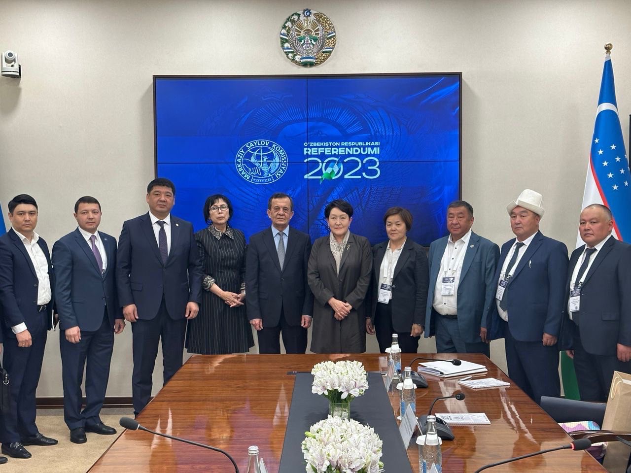Делегация ЦИК Кыргызской Республики во главе с председателем Н.Шайлдабековой, членами ЦИК А.Дубанбаевой, И.Гайпкуловым, руководителем аппарата ЦИК М.Мамбеталиевым, спецпредставителем Жумгальской и КочкорскойТИК Т.Акимбаевым и председателем Жети-Огузской ТИК Н.Алымбаевым принимает участие в мониторинге референдума Республики Узбекистан по проекту Конституционного закона Республики Узбекистан «О Конституции Республики Узбекистан».
