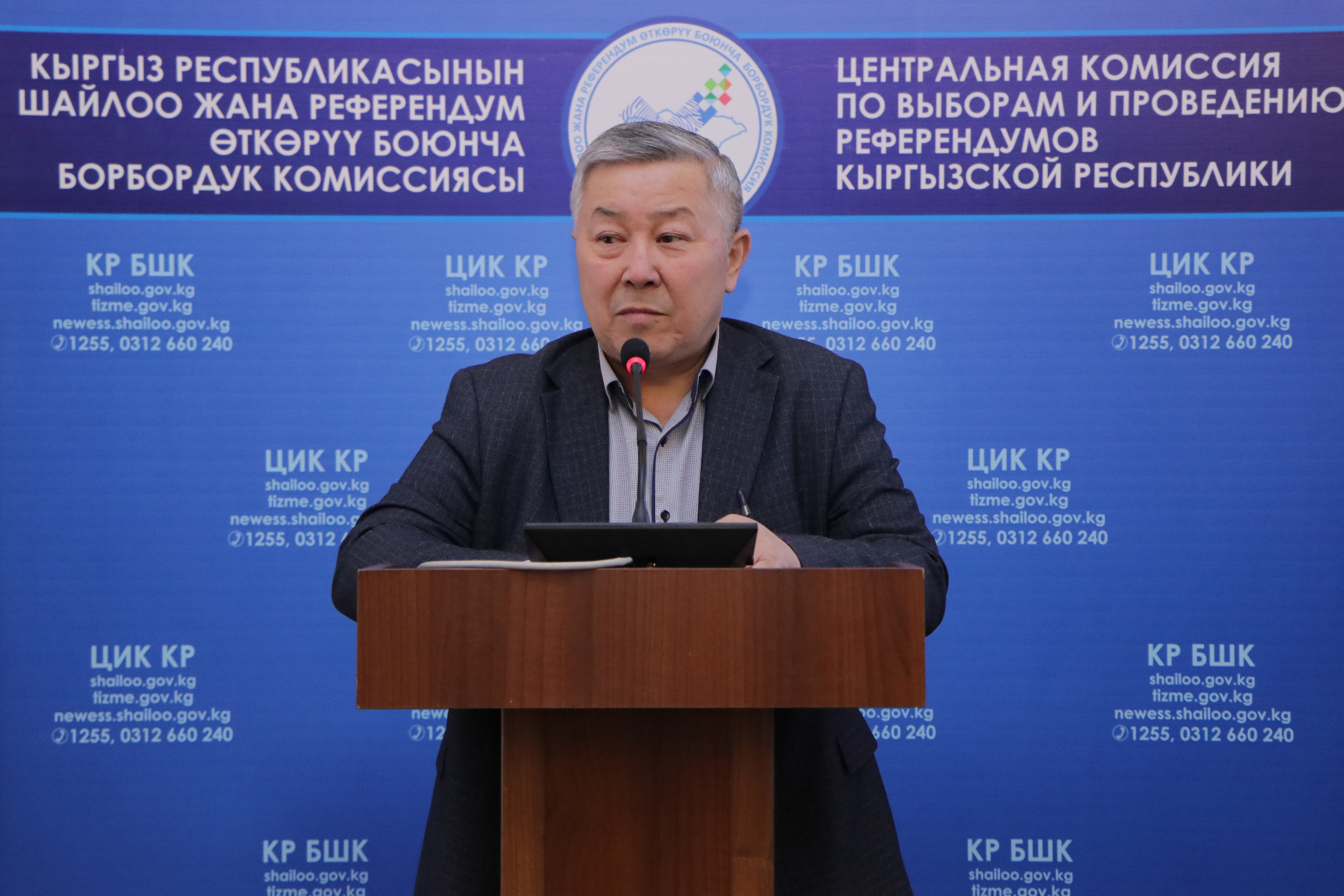 Заместитель председателя ЦИК КР Н. Койчукеев информировал кандидатов и их представителей о завершении процесса регистрации кандидатов. Он отметил, что всего выдвинулись 49 кандидатов, из них 32 кандидата были зарегистрированы, отказано 6 кандидатам, свои заявления отозвали 11 кандидатов. Также с 8 мая 2023 года стартует предвыборная агитация, которая завершится до 8:00 часов 27 мая 2023 года.