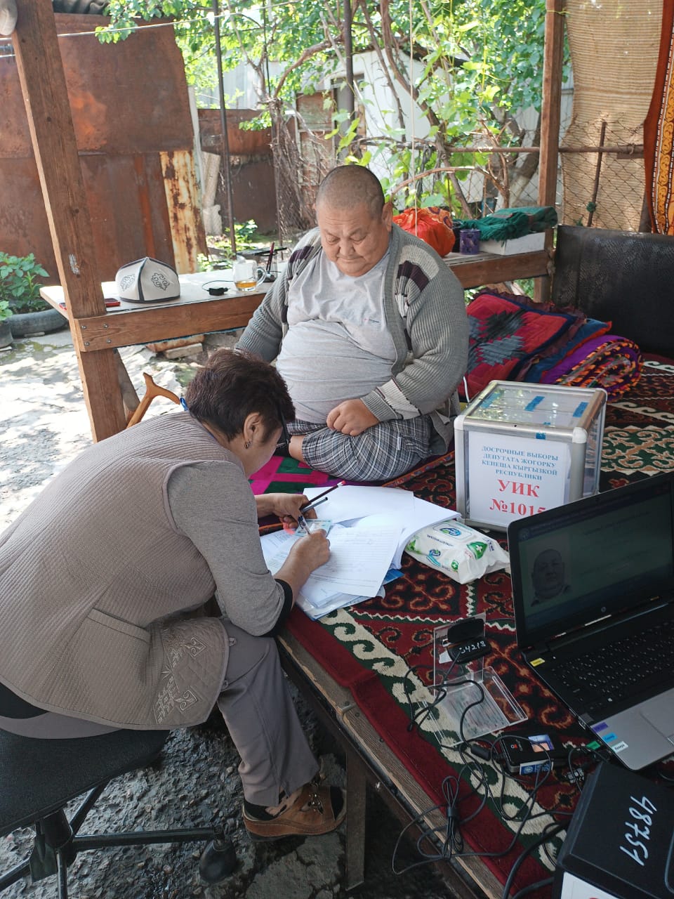 Сегодня, 27 мая 2023 г., в Ленинском одномандатном избирательном округе №26г. Бишкек проходит голосование вне помещения на досрочных выборах депутата Жогорку Кенеша Кырызской Республики.