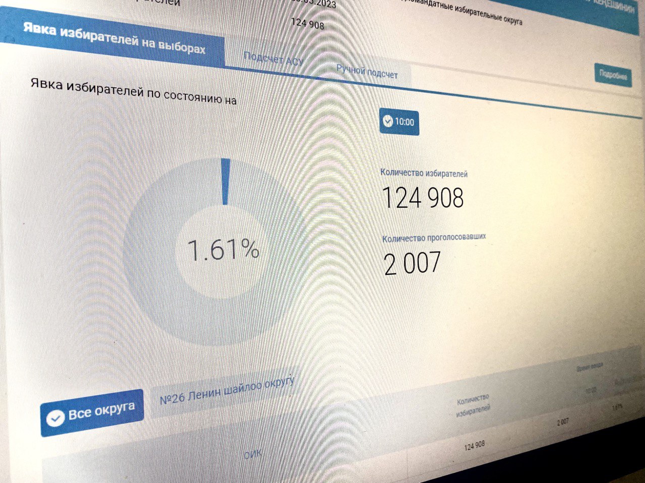 Центральная комиссия по выборам и проведению референдумов Кыргызской Республики информирует о явке избирателей на 10.00.
