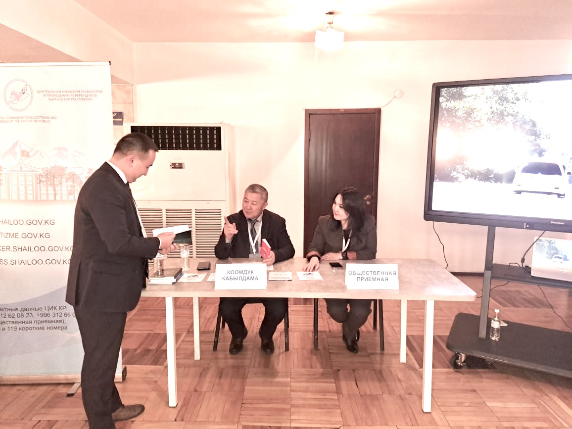 Центральная комиссия по выборам и проведению референдумов Кыргызской Республики в рамках работы Народного Курултая наряду с другими государственными органами организовало общественную приемную в Кыргызской национальной филармонии.