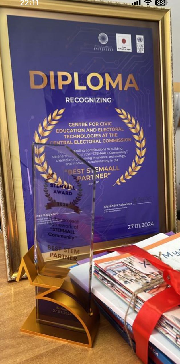 27 января состоялась церемония вручения премии «STEM4ALL Award 2024», где Центр гражданского образования и избирательных технологий ЦИК КР выиграл в номинации «Лучший STEM4ALL Партнер» за внесенный вклад и продвижение STEM образования в Кыргызской Республике.