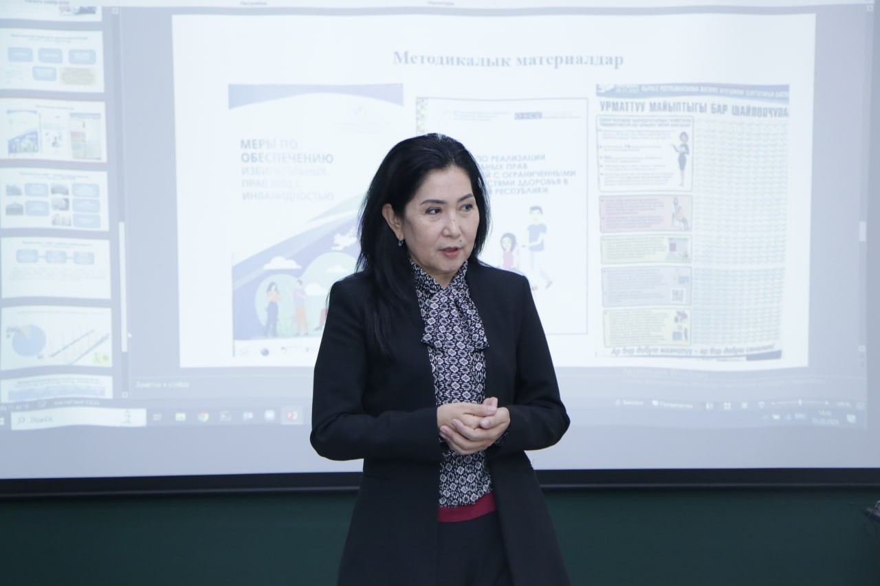 Член ЦИК КР А. Жумалиева, руководитель Рабочей группы ЦИК по совершенствованию реализации избирательных прав граждан с ограниченными возможностями здоровья, поделилась с молодыми избирателями о проводимых мероприятиях в целях повышения осведомленности общественности о важности равноправного и инклюзивного участия людей с ограниченными возможностями в политической жизни, повышения их потенциала и мотивации в реализации их пассивного избирательного права в качестве кандидатов.
