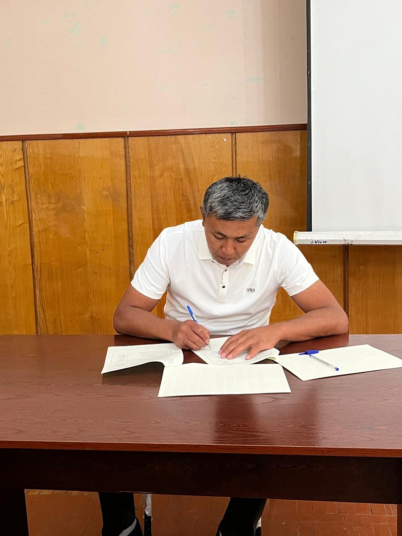 Сегодня, 7 июня 2024 года, в городе Ноокат Ноокатского района Ошской области состоялось подписание Меморандума между кандидатами в депутаты по Ноокатскому №5 одномандатному избирательному округу, участвующих на досрочных выборах депутатов Жогорку Кенеша Кыргызской Республики, назначенных на 30 июня 2024 года.