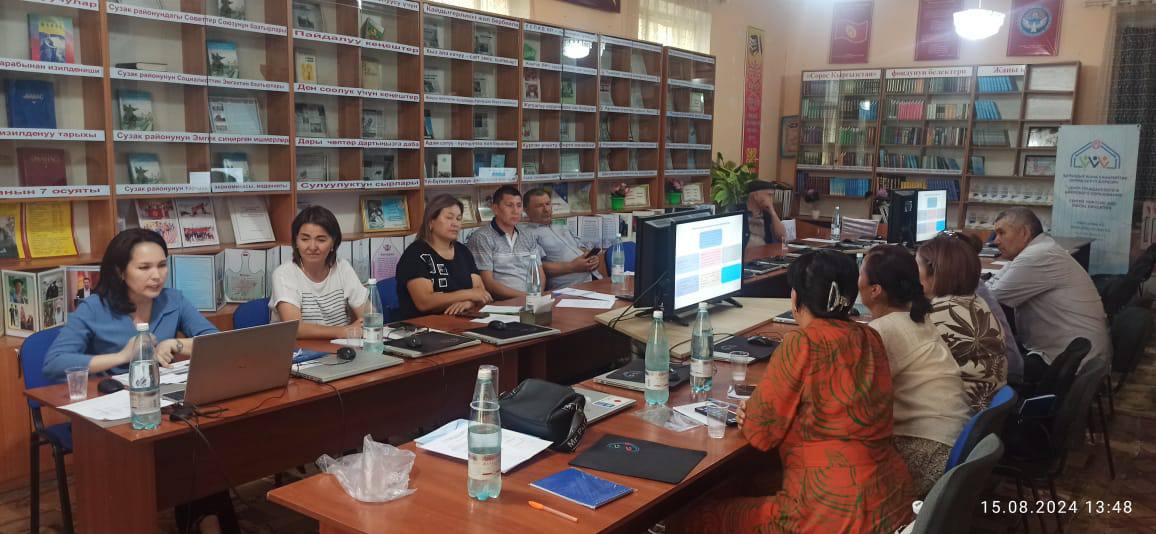 Обучение членов Сузакской окружной избирательной комиссии проходило по ключевым вопросам избирательного процесса с учетом специфики данных выборов. Для этих целей ЦИК КР разработала обучающие модули по следующим темам: