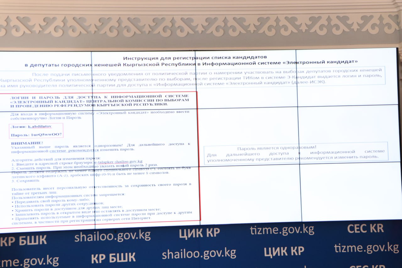 Решение политической партии о выдвижении списка кандидатов по единому избирательному округу или кандидатов по многомандатному избирательному округу, принимается тайным голосованием. Выдвижение списка кандидатов в депутаты городских кенешей начинается со дня назначения выборов и заканчивается до 18:00 часов 7 октября 2024 года.