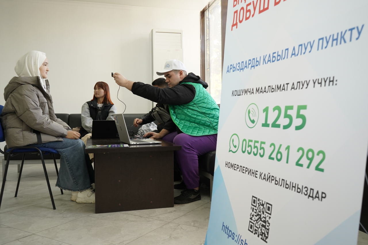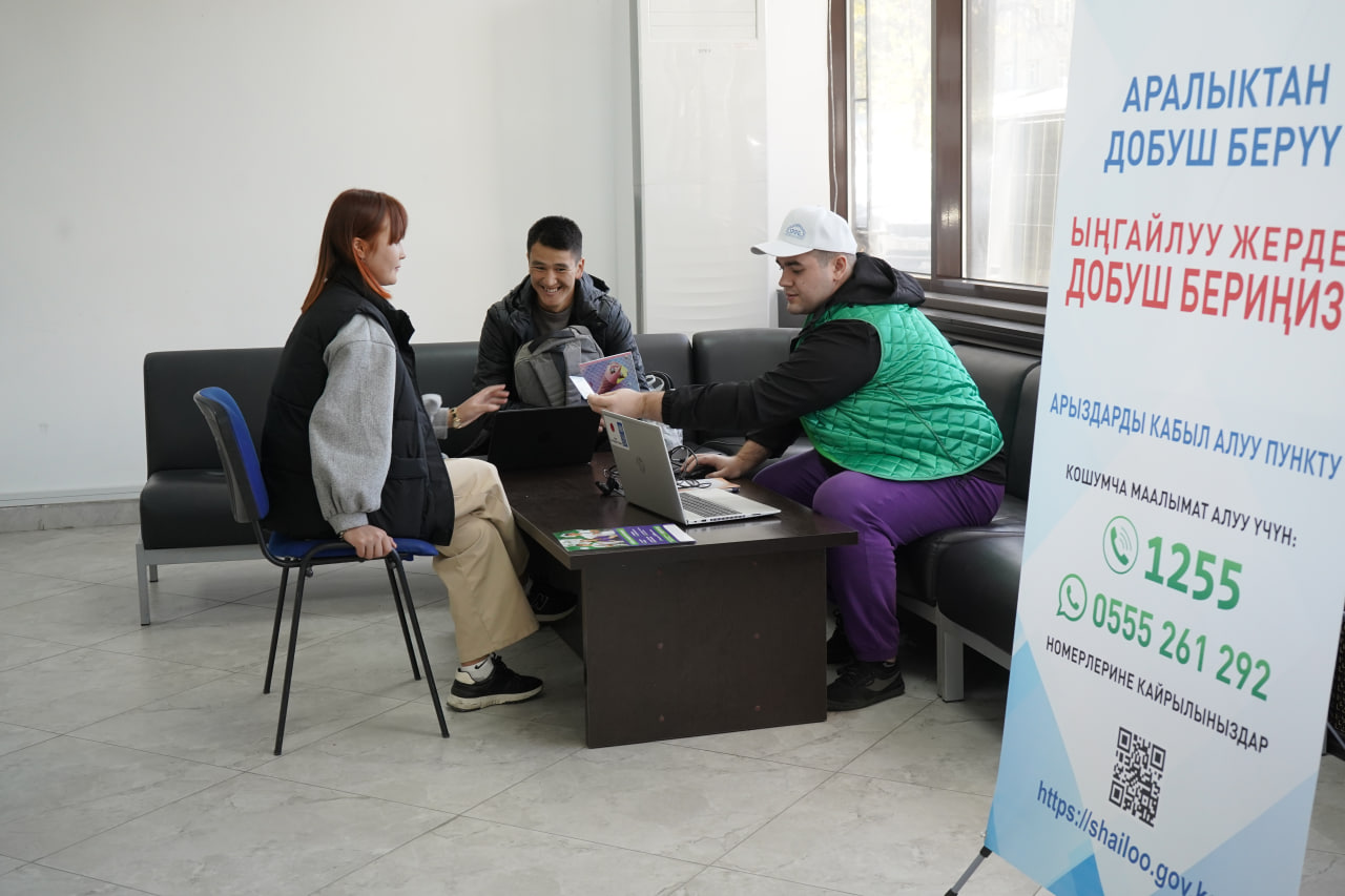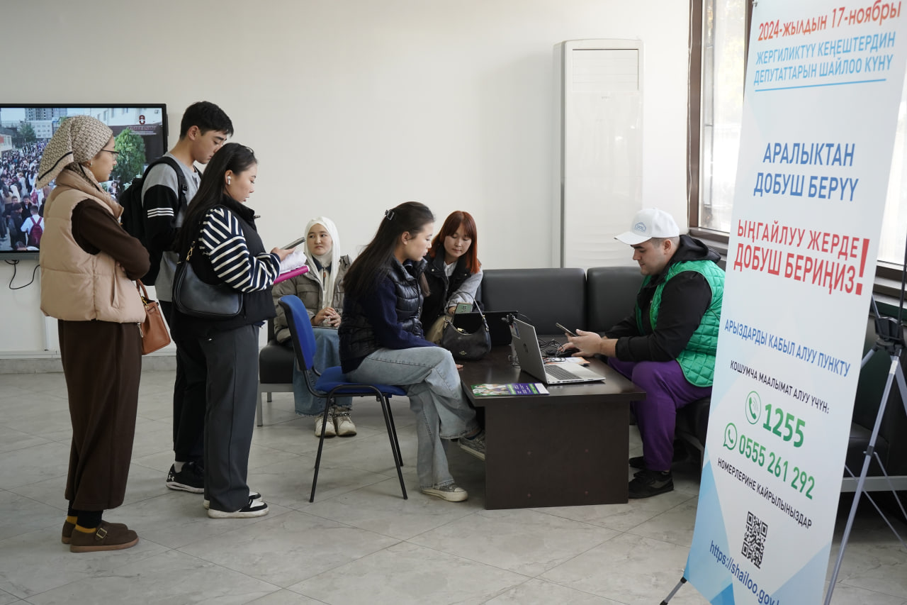 - подать ЭЛЕКТРОННОЕ ЗАЯВЛЕНИЕ на сайте «tizme.gov.kg» через сервис «Кабинет избирателя».