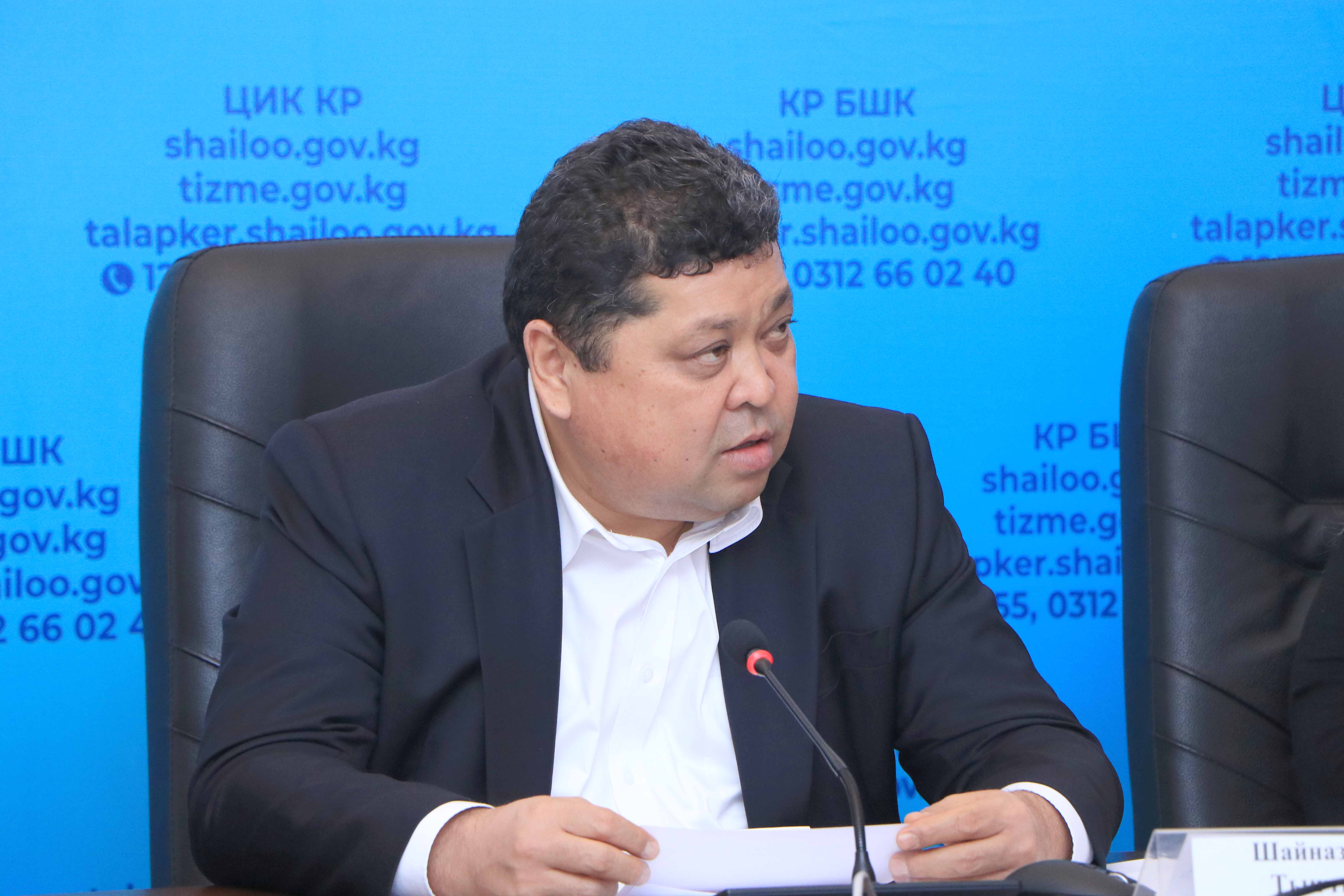 Председатель ЦИК КР Тынчтык Шайназаров подчеркнул важность создания благоприятных условий во время выборов депутатов ЖК КР и обратился с просьбой обеспечить бесперебойное электроснабжение и стабильное интернет-соединение на выборах.