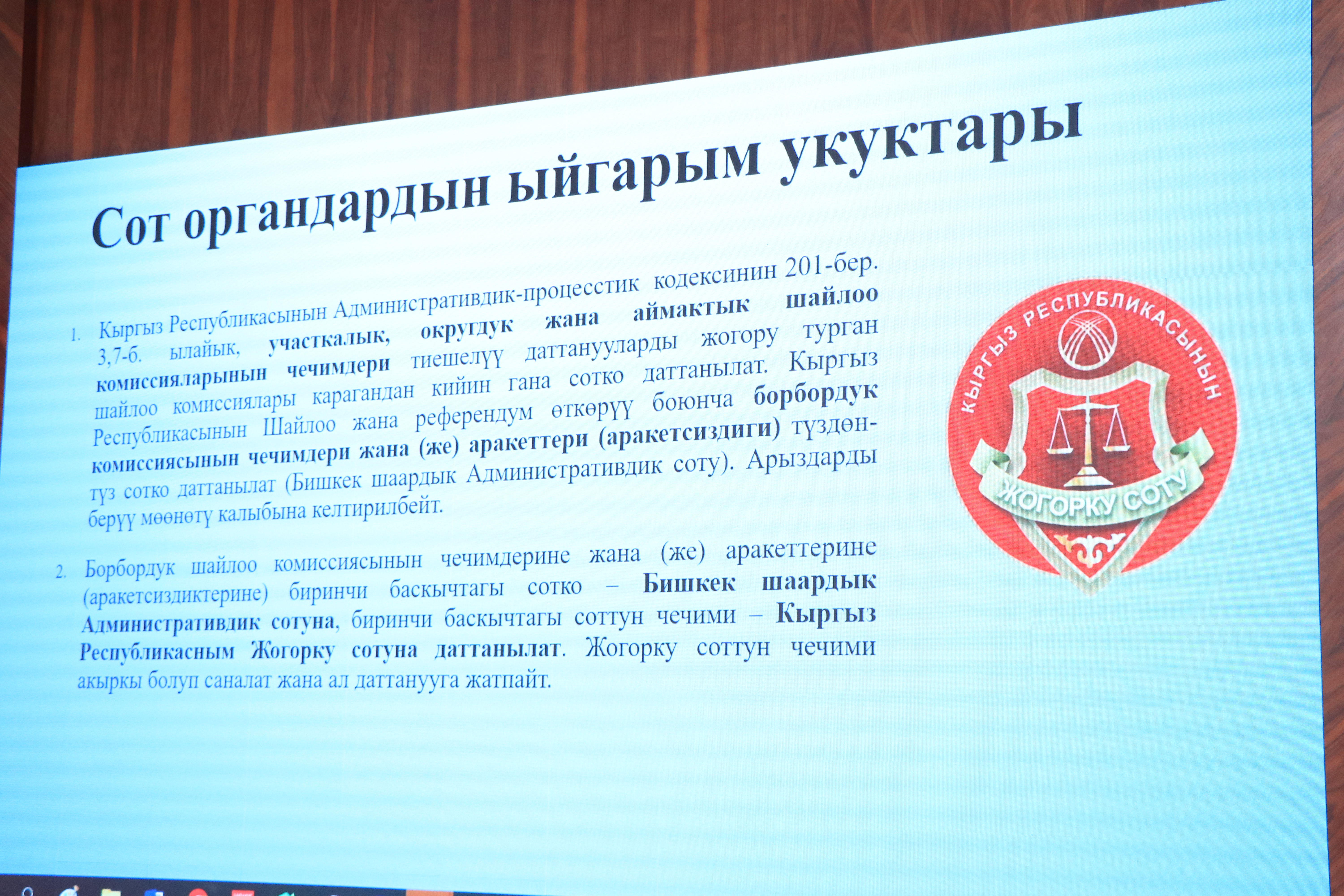 Центральная избирательная комиссия Кыргызской Республики завершила серию семинаров на тему «Действия правоохранительных органов по оперативному реагированию на нарушения избирательного законодательства в период подготовки и проведения выборов».