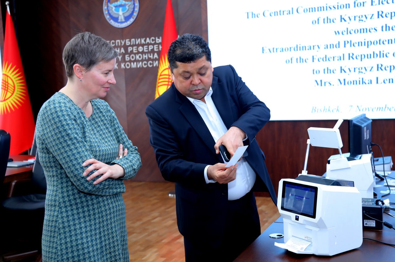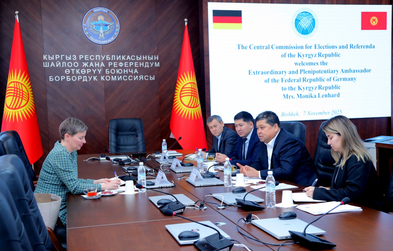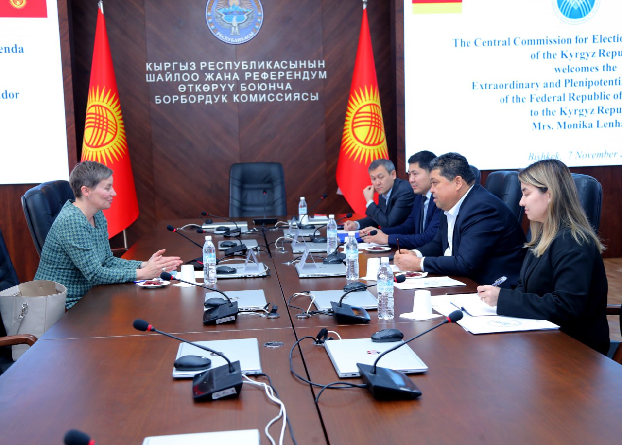 Председатель Центральной комиссии по выборам и проведению референдумов Кыргызской Республики Тынчтык Шайназаров сегодня, 7 ноября, встретился с Чрезвычайным и Полномочным Послом Федеративной Республики Германия в Кыргызской Республике Моникой Ленхард.