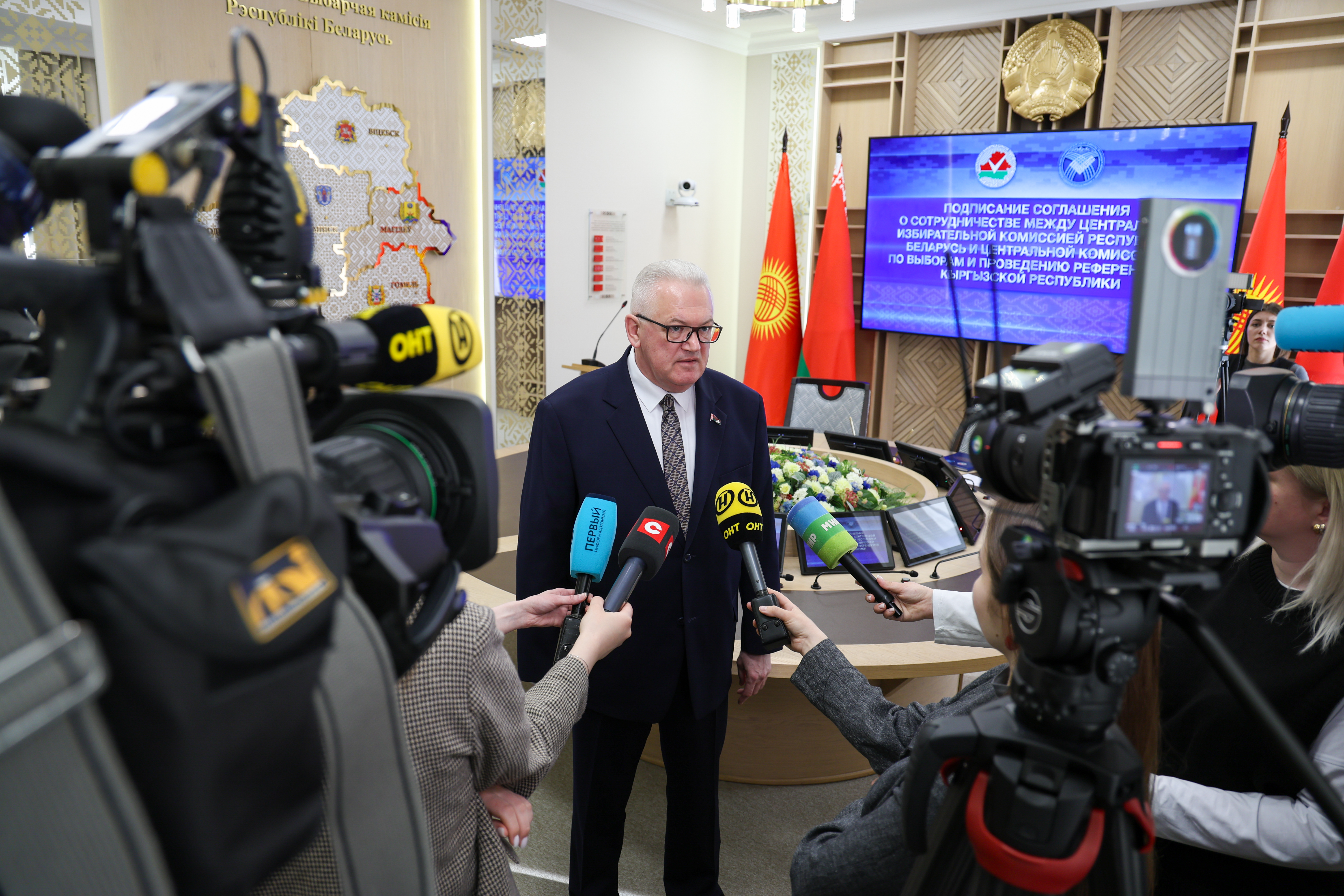 Сегодня, 28 марта, в городе Минск состоялось подписание Соглашения о сотрудничестве между Центральной комиссией по выборам и проведению референдумов Кыргызской Республики и Центральной избирательной комиссией Республики Беларусь в лице председателей Тынчтыка Шайназарова и Игоря Карпенко.