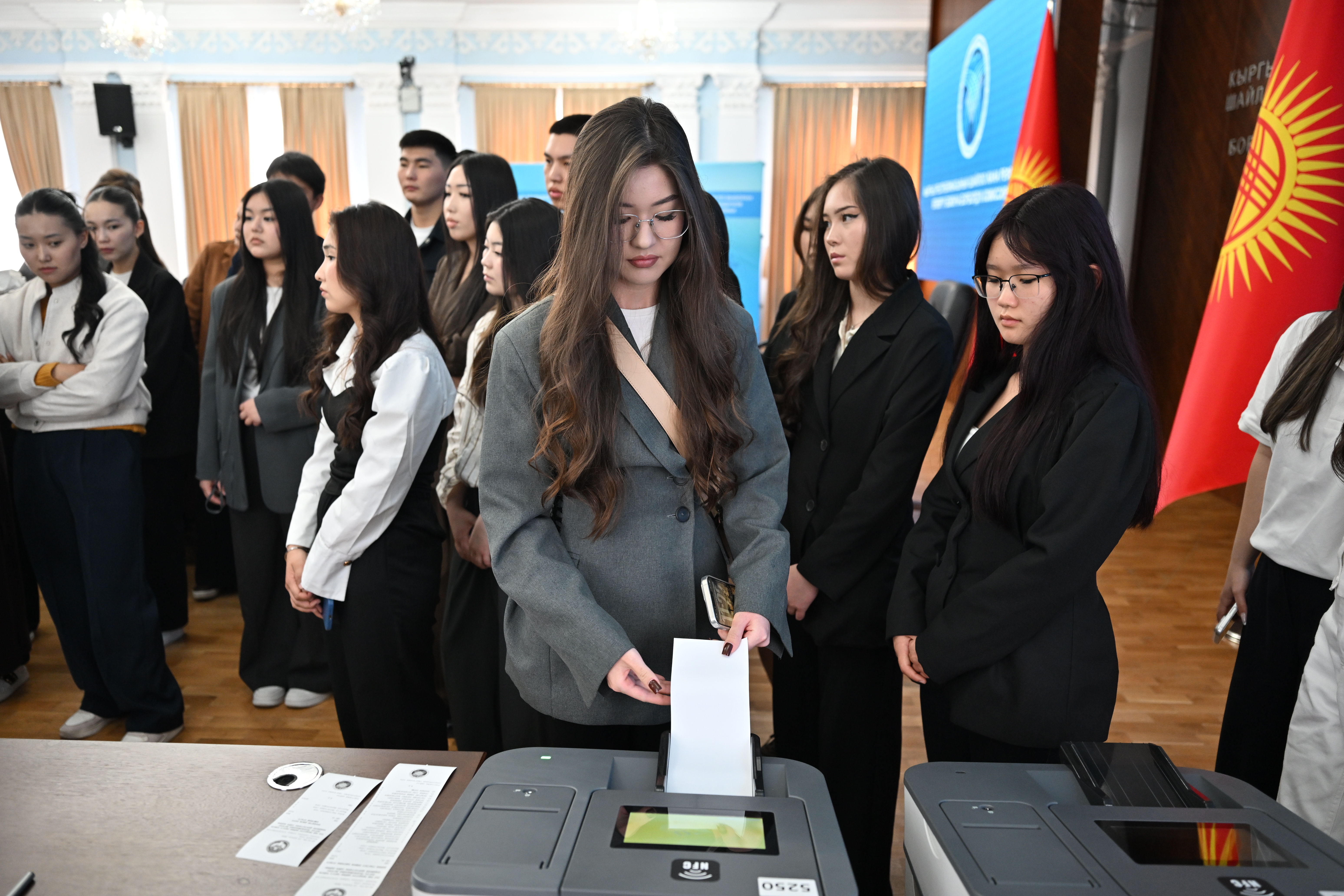 Заведующая отделом по организации выборов Берикбаева Керемет рассказала студентам о механизмах участия в голосовании, важности легитимных выборов и о том, как молодые граждане могут реально влиять на будущее развитие страны через реализацию своих избирательных прав.