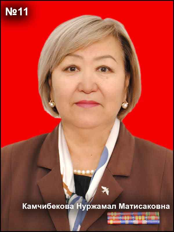 - Камчибекова Нуржамал Матисаковна 08.11.1963 Ветеран органов национальной безопасности, ведущий специалист Манасского городского управления статистики