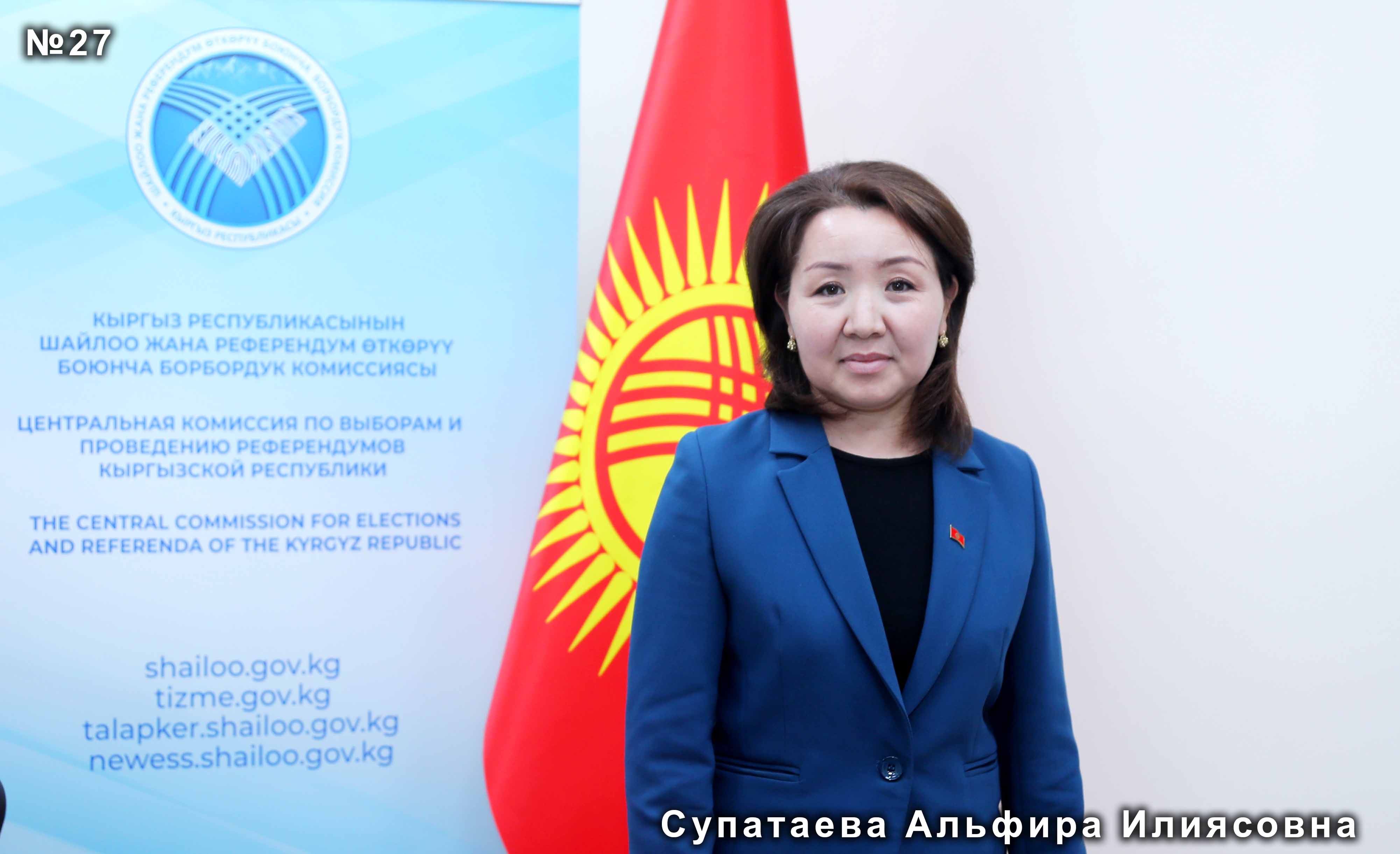 - Супатаева Альфира Илиясовна 22.07.1981 Заведующий отделом Национальной комиссии по государственному языку при Президенте Кыргызской Республики.